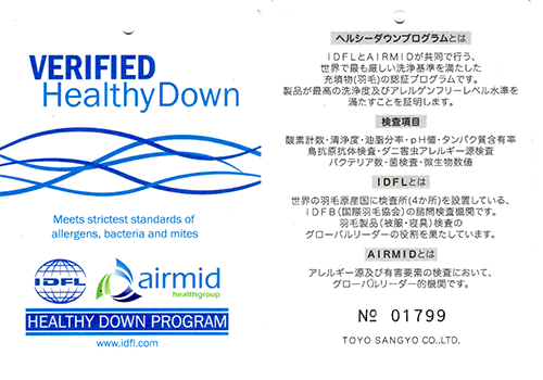 品質表示のラベルには、羽毛の状態からそれぞれ次のお手入れ時期の目安を記載しています。 また、年に2回ワンコインで除菌・消臭・ふっくら加工させていただいたりと様々なアフターフォローサービスをさせて頂いております。