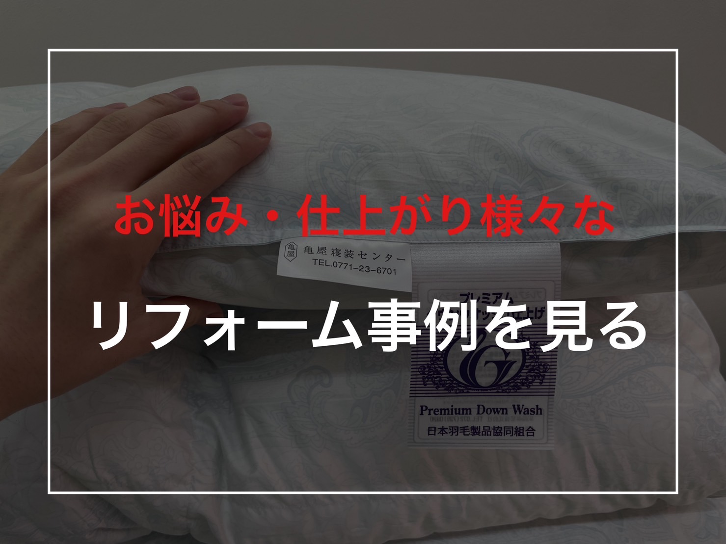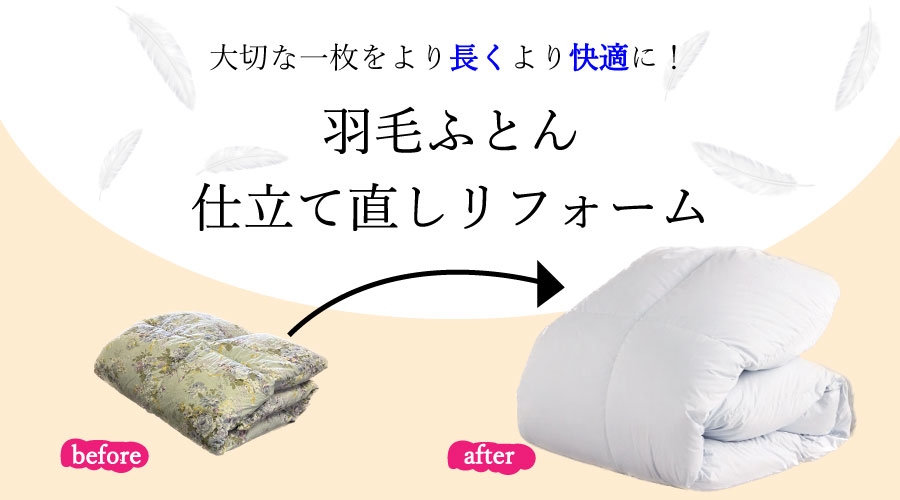 「この季節に使いたい」「昔ながらの一軒家で隙間風が寒くて」など、どんなに小さなことでもご相談下さい。お客様の悩みに寄り添い、リフォームで理想の羽毛布団が出来るように、様々なご提案をさせて頂きます。