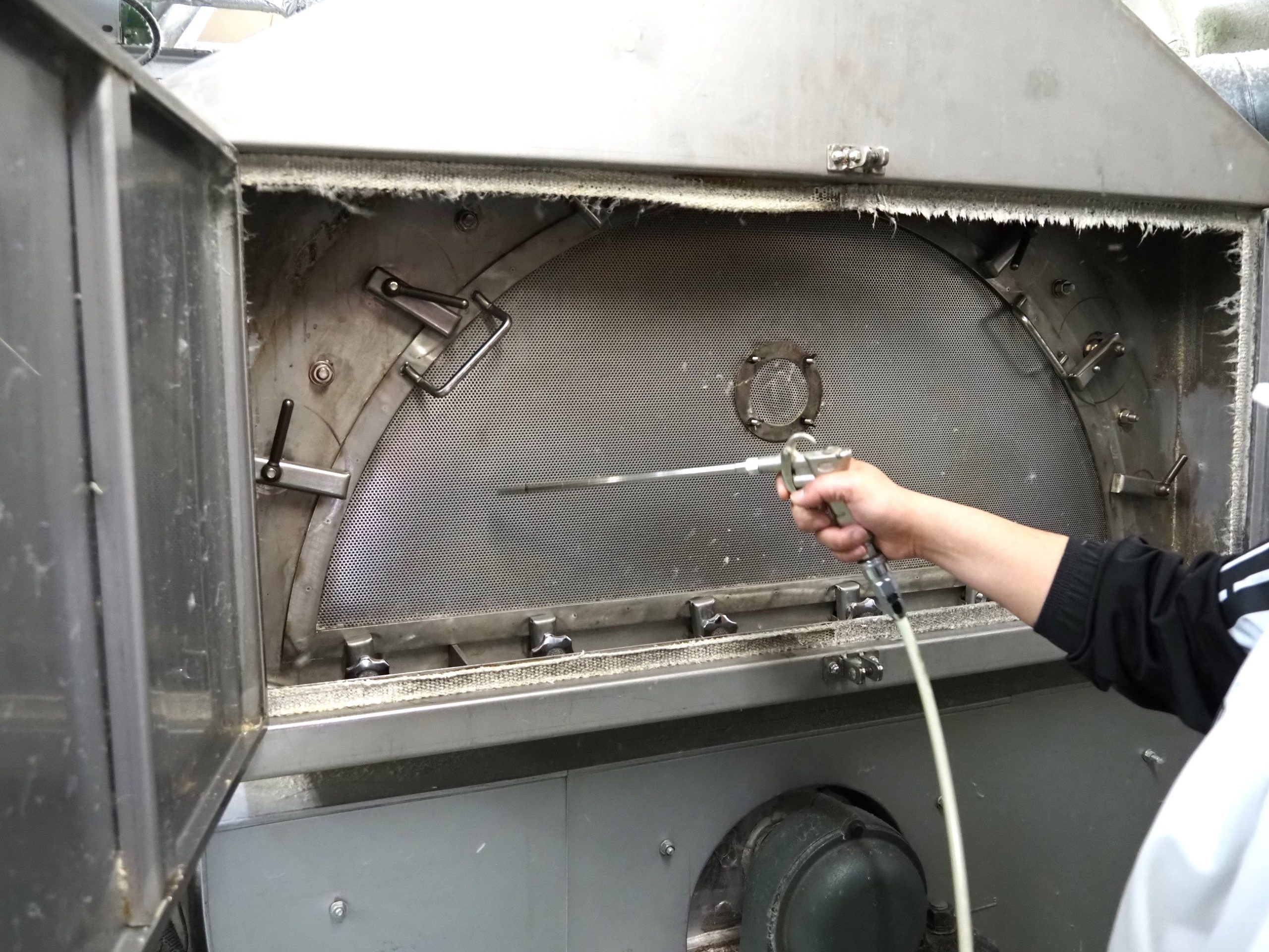 羽毛を冷却しながら、乾燥で広がった羽毛の奥についているホコリなどを再度徹底して取り除きます