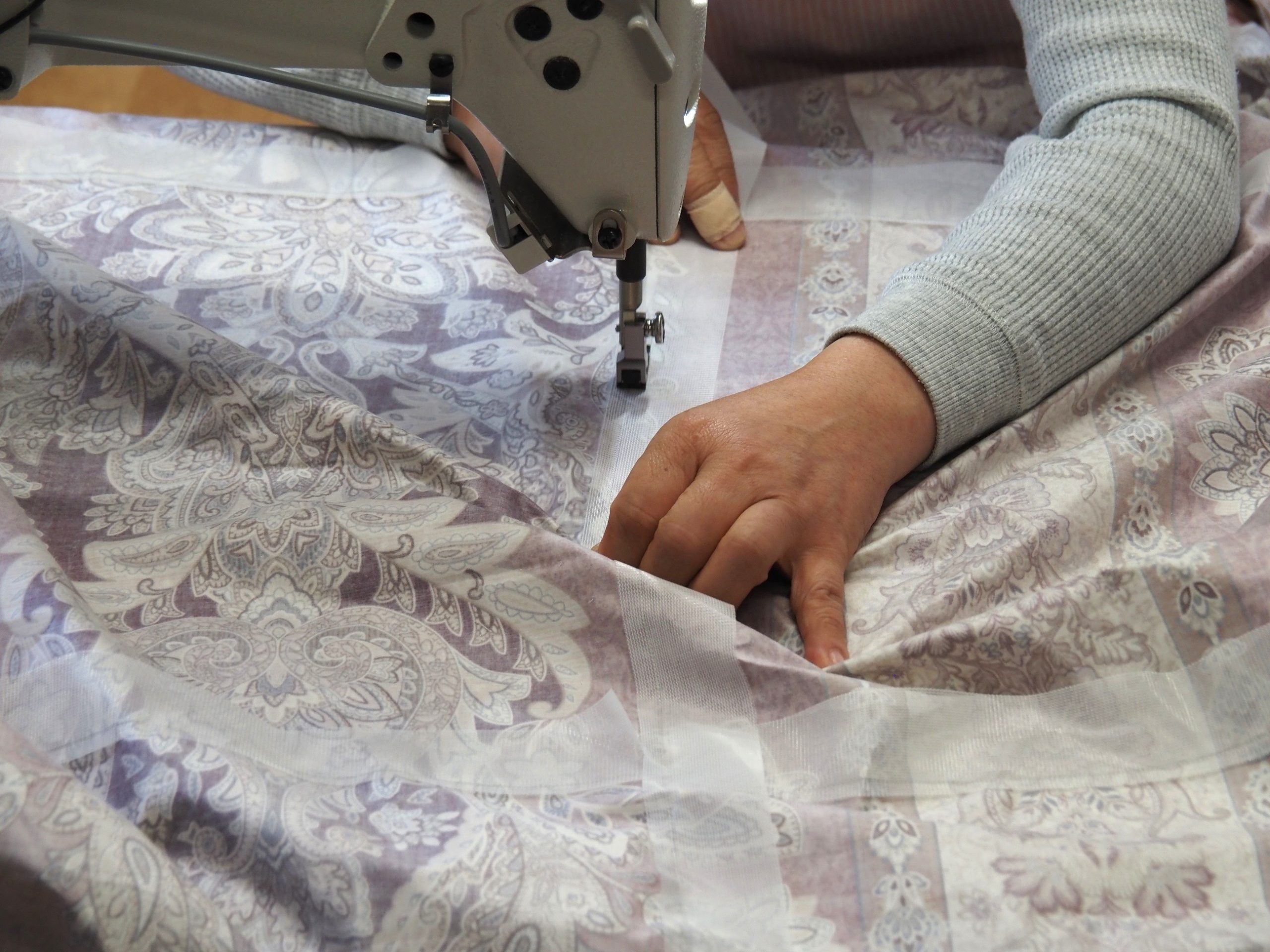 吹き込み口をミシンで縫い、検品をして出来上がり。ふかふかの羽毛布団の完成です