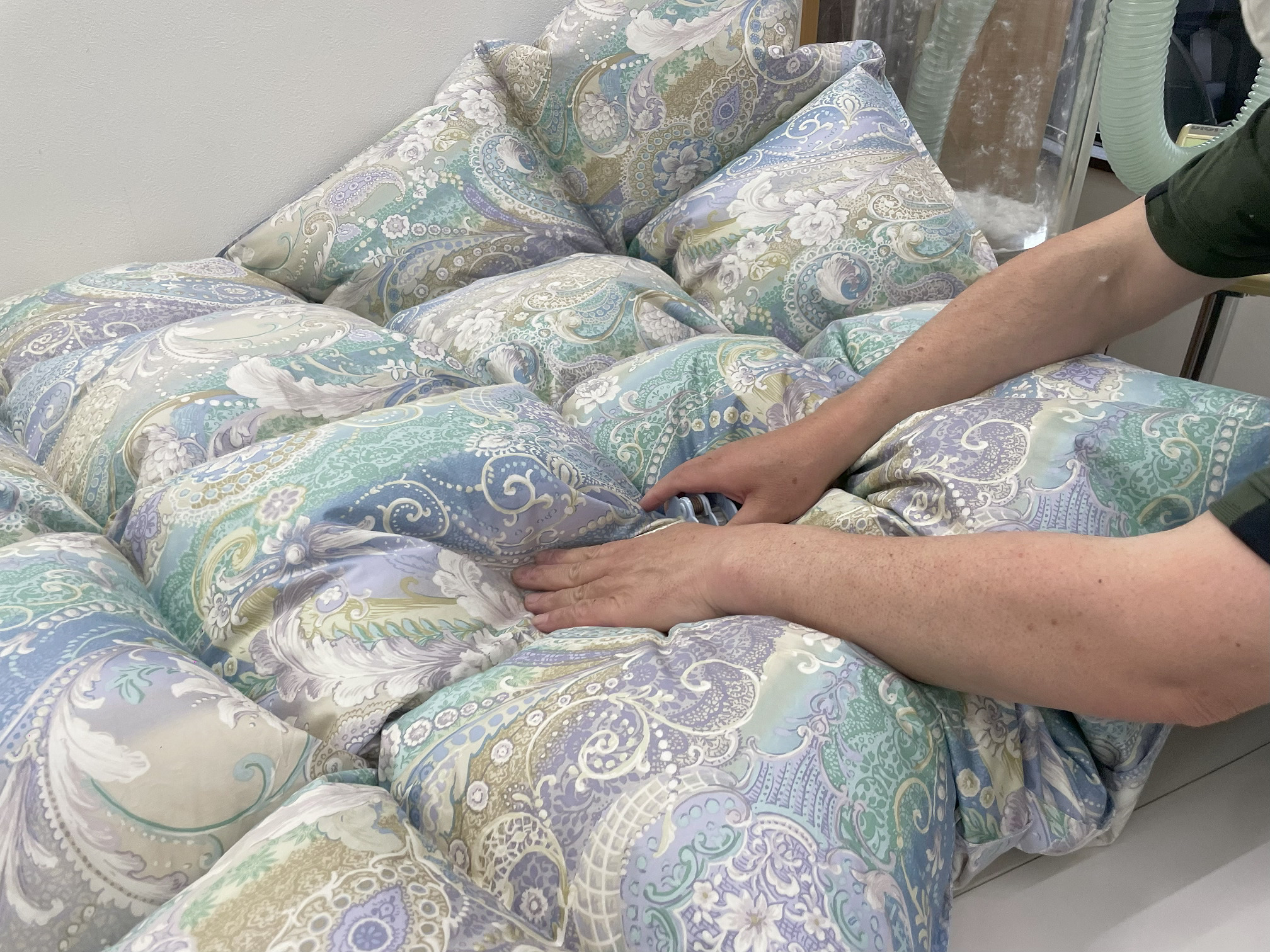 ①冬用の羽毛布団から3シーズン使える合掛け布団へのリフォーム