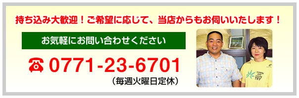 持ち込み大歓迎! ご希望に応じて、当店からもお伺いいたします! どうぞ、お気軽にお問い合わせ下さい!