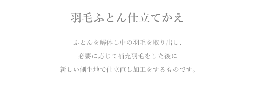 長年使って嵩が減り元気がなくなった羽毛を、洗浄・パワーアップ加工をして新品同様に蘇えらせます。