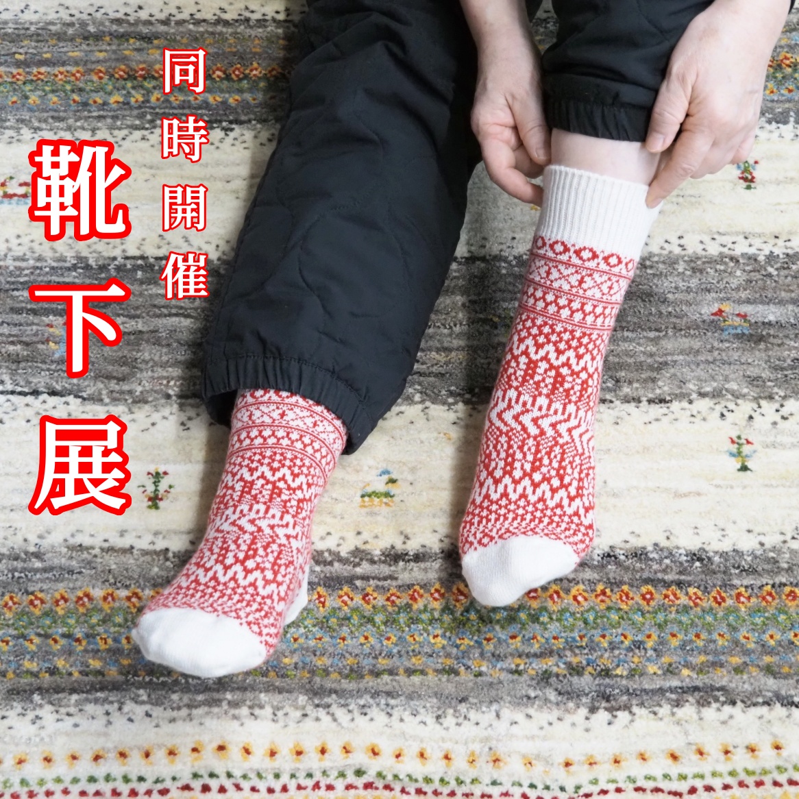 同時開催で靴下展も開催。良質な天然素材であり”はくひとおもい”をコンセプトに、素材・デザイン・編み方や価格を徹底してこだわった NISHIGUCHI KUTSUSHITAの靴下を中心に展開しています。
