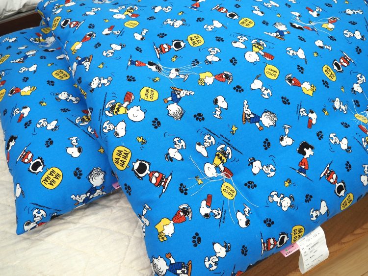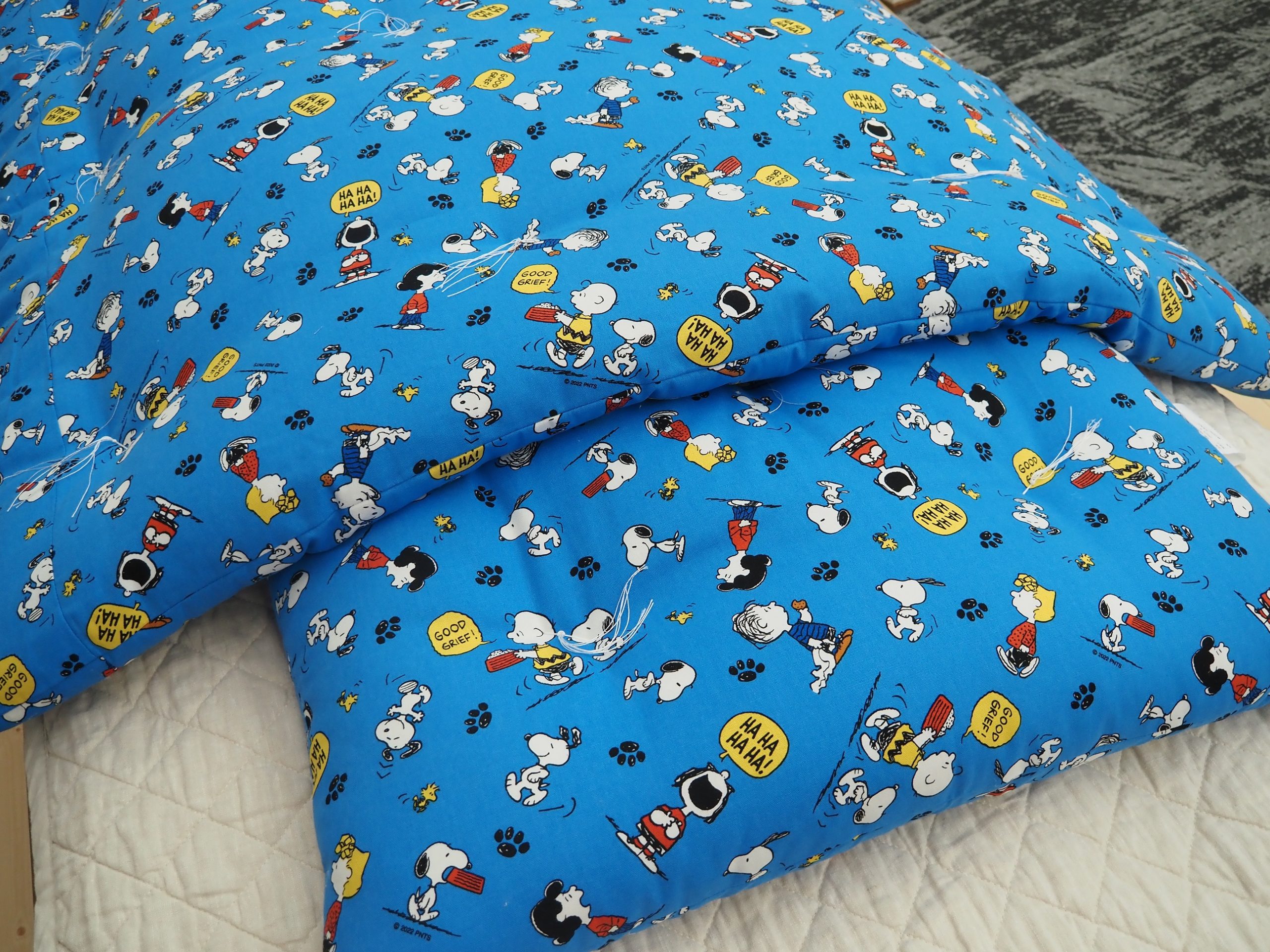 亀岡市のK様より、スヌーピーの生地から来月生まれるお孫さんのベビーベッド用のお布団を作ってほしい。とご注文頂きました。