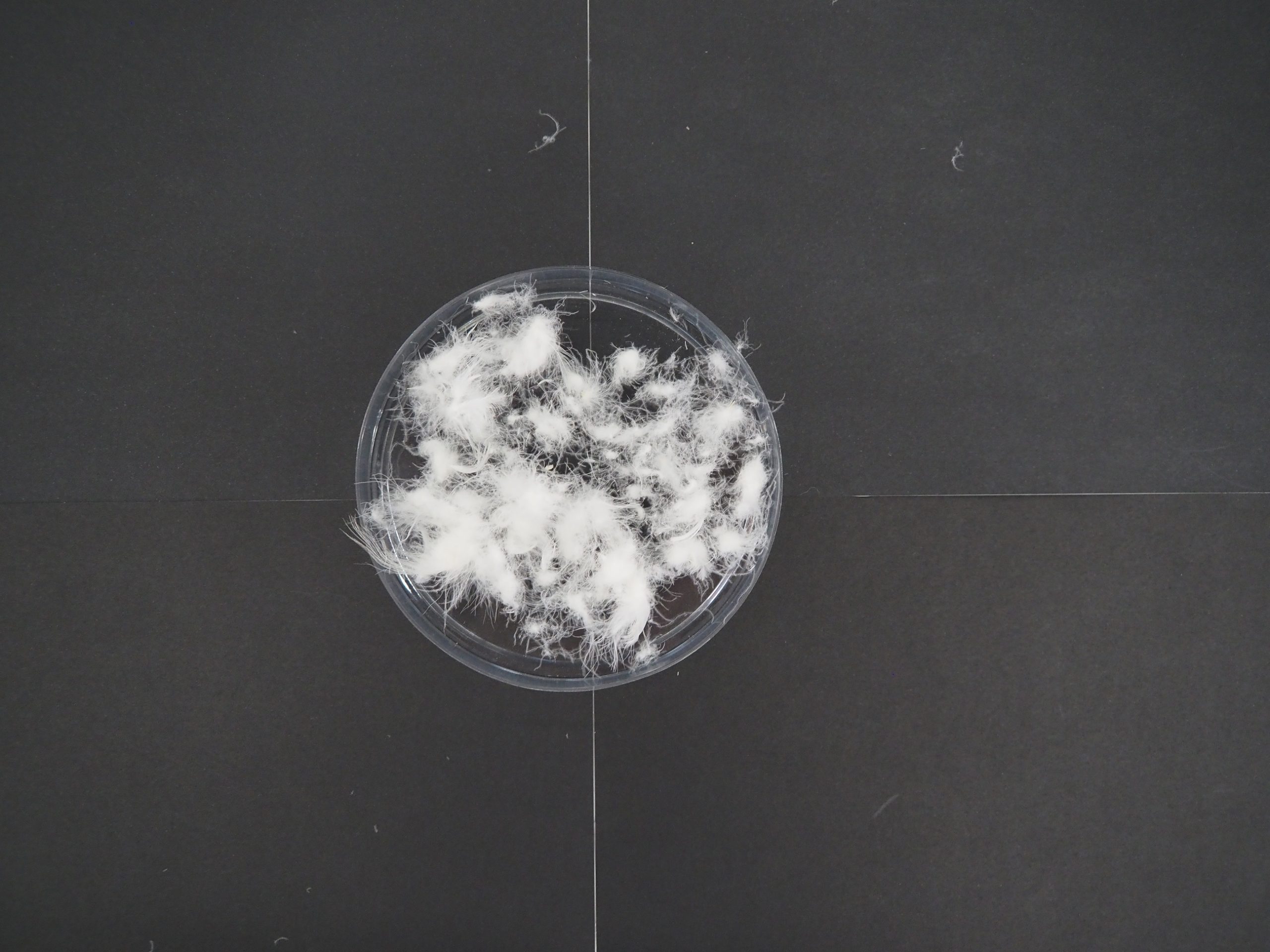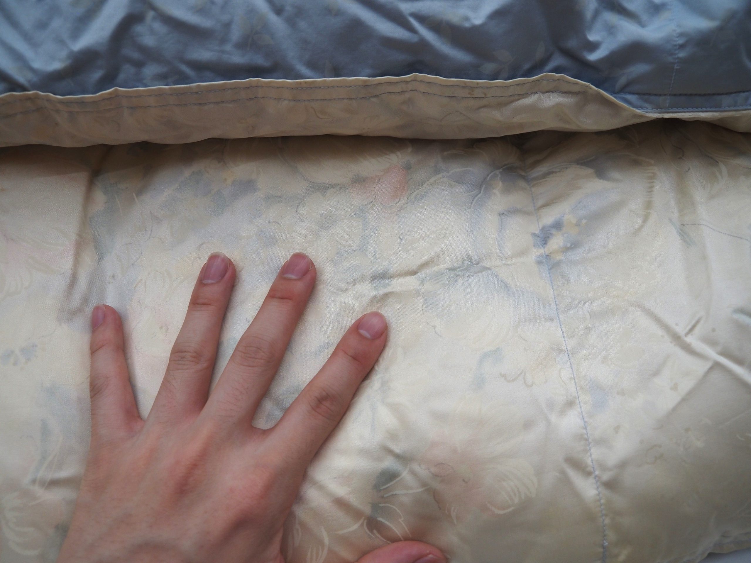 羽毛を取り出しましたが、長年使われている割にはすごく綺麗で大きな羽毛でした。ただファイバー(ちぎれた羽毛)は少しありました。