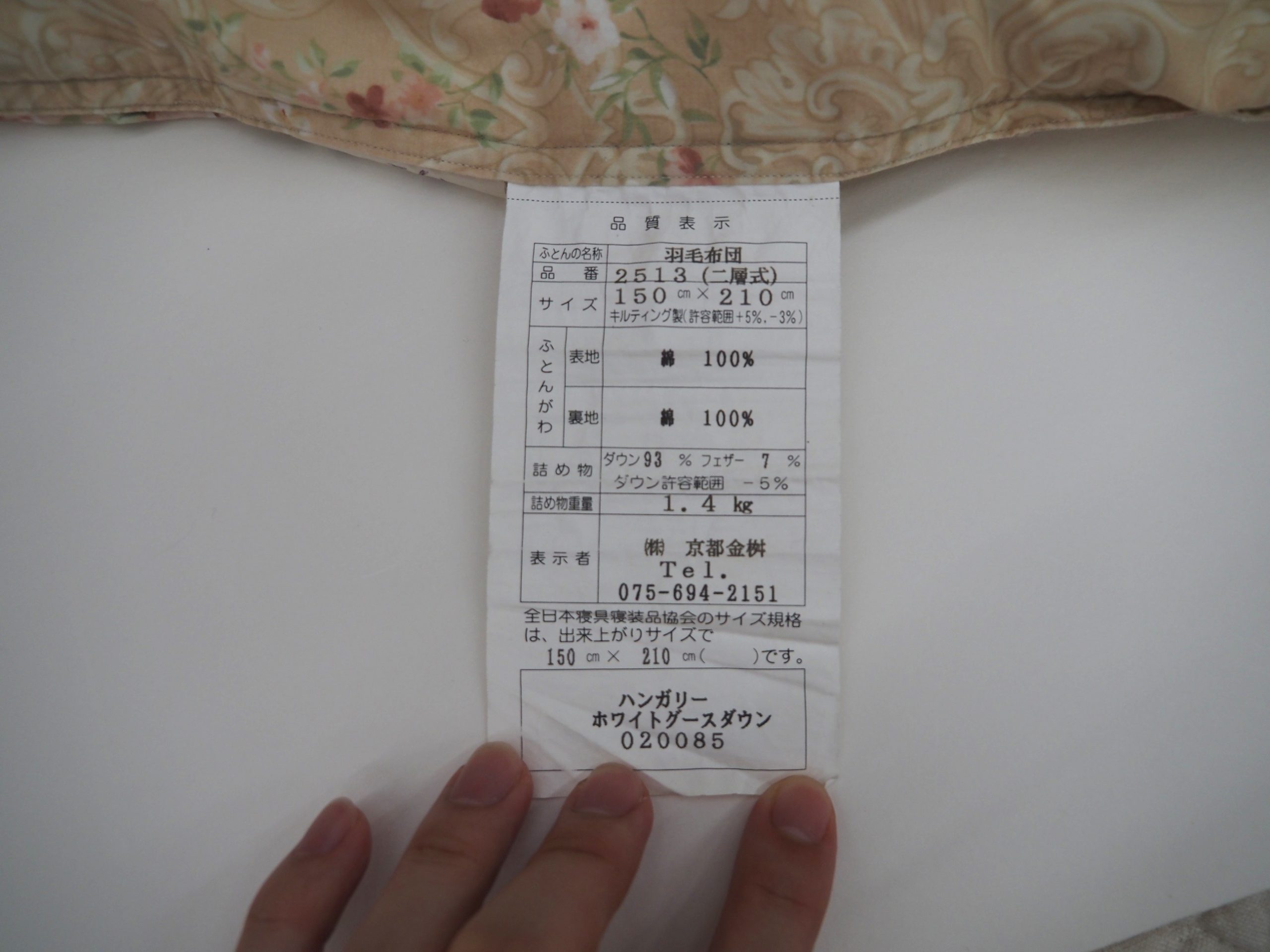 お預かりした羽毛布団は、京都金桝さんのハンガリーホワイトグース93%。