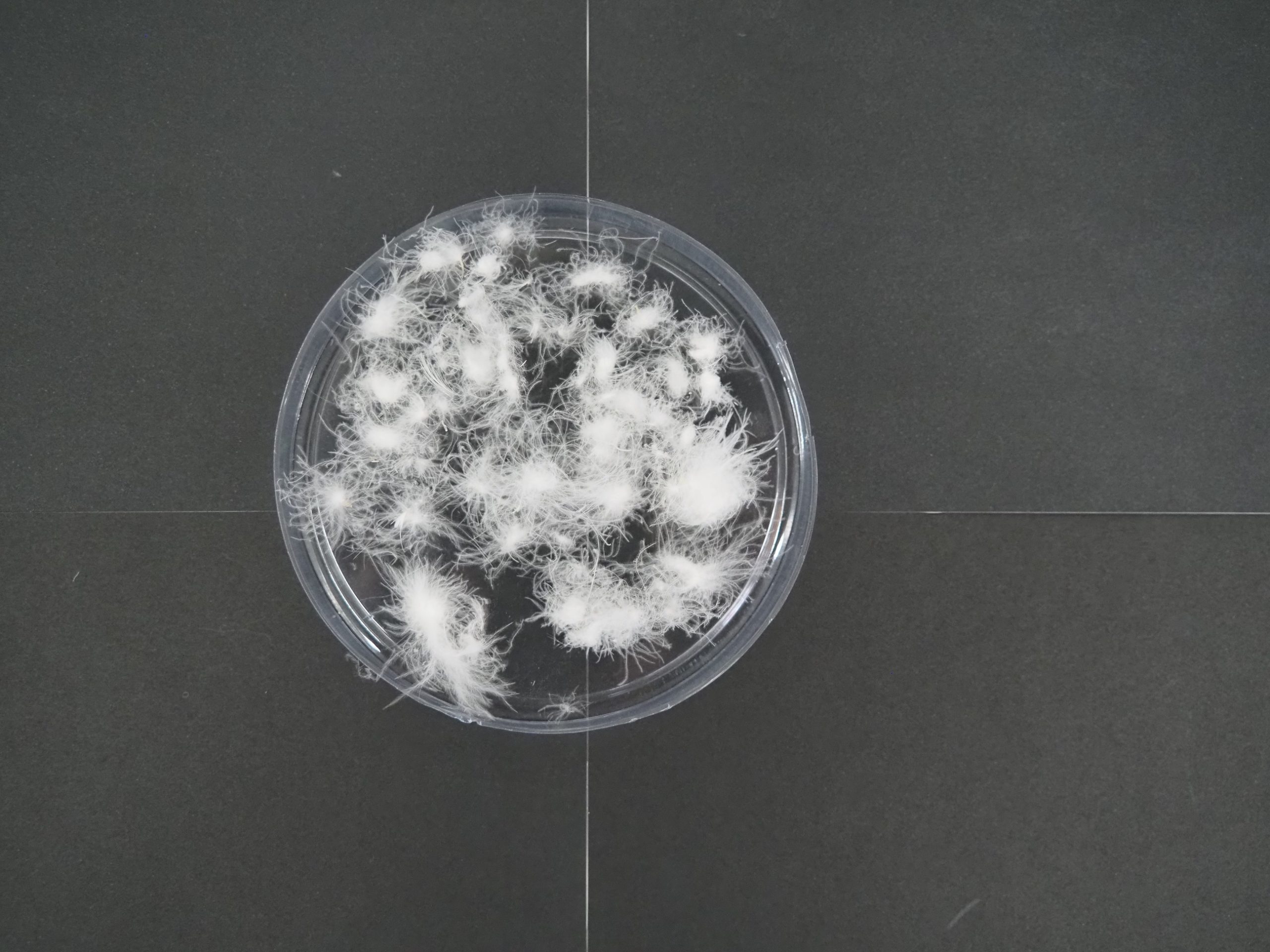 羽毛は、真っ白で大きくて綺麗ですが何個も絡まり合い団子状になっています。年中使っていて、汗や湿気を吸った状態で長年使っていたのもあり、ちぎれた羽毛もかなりありました。