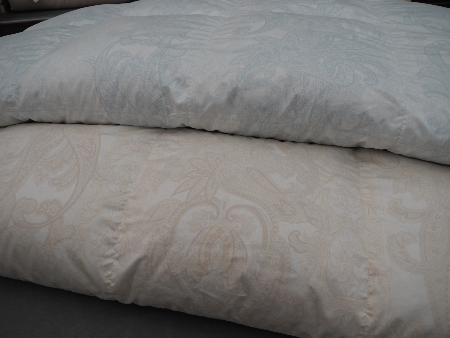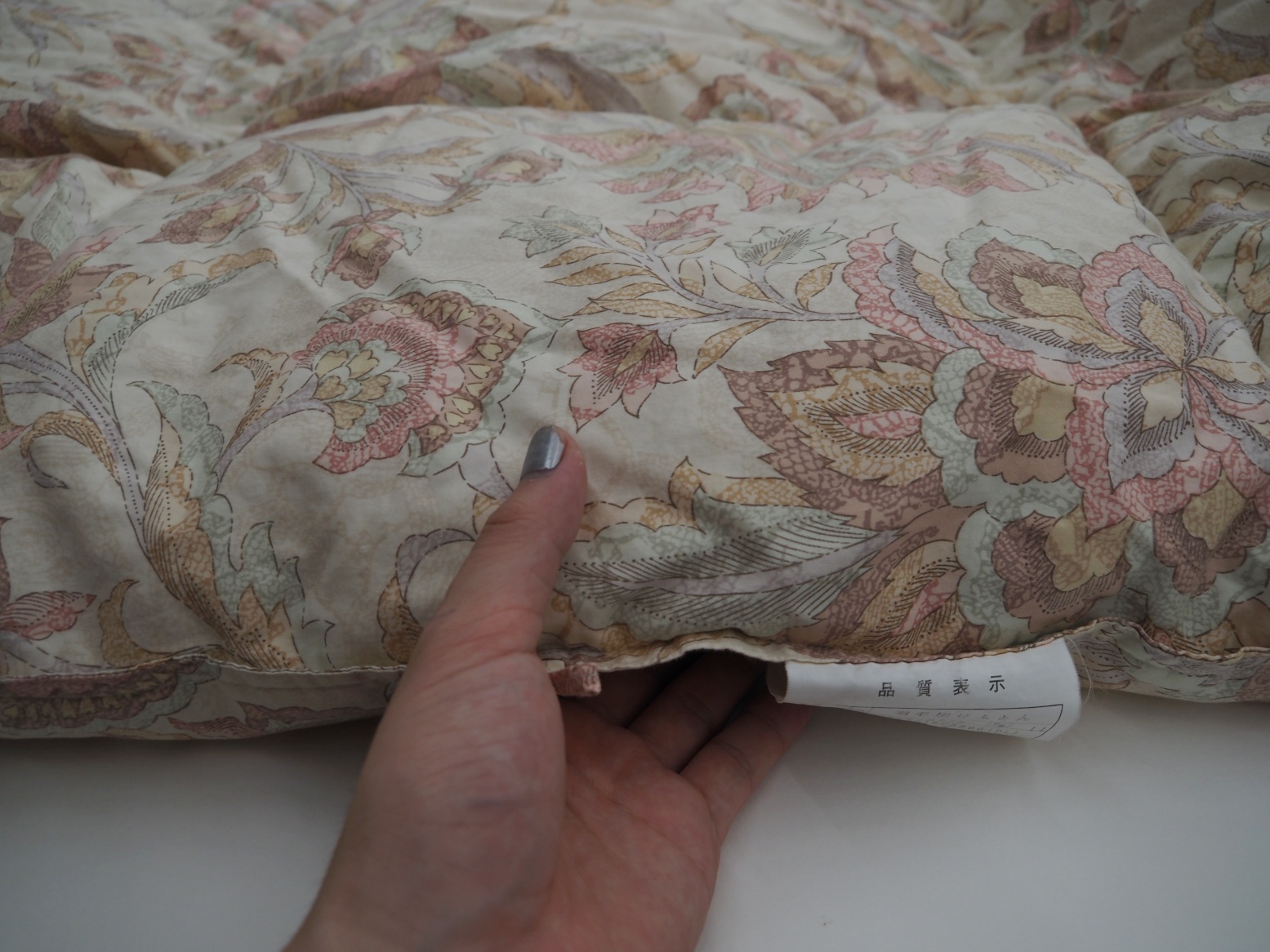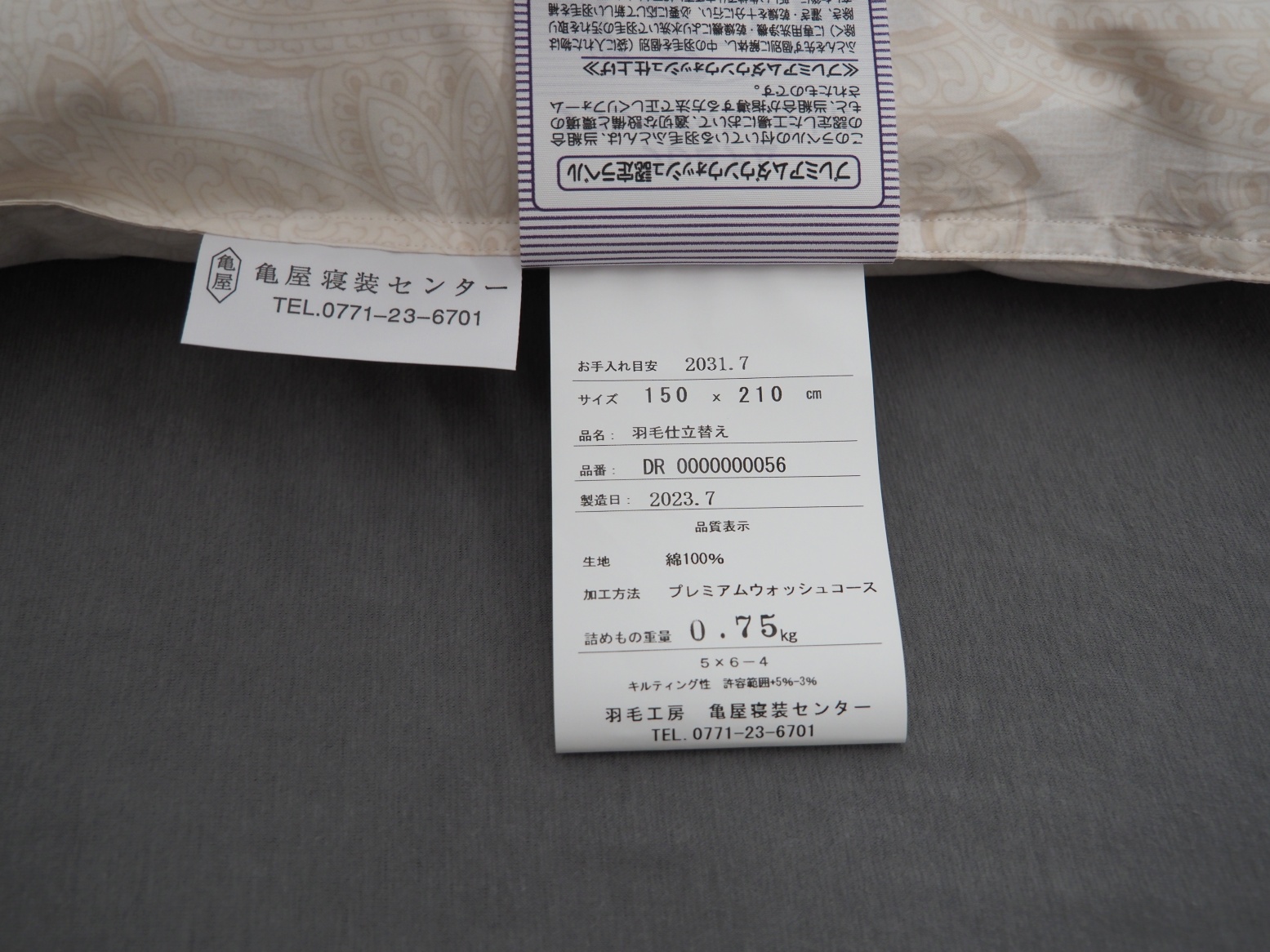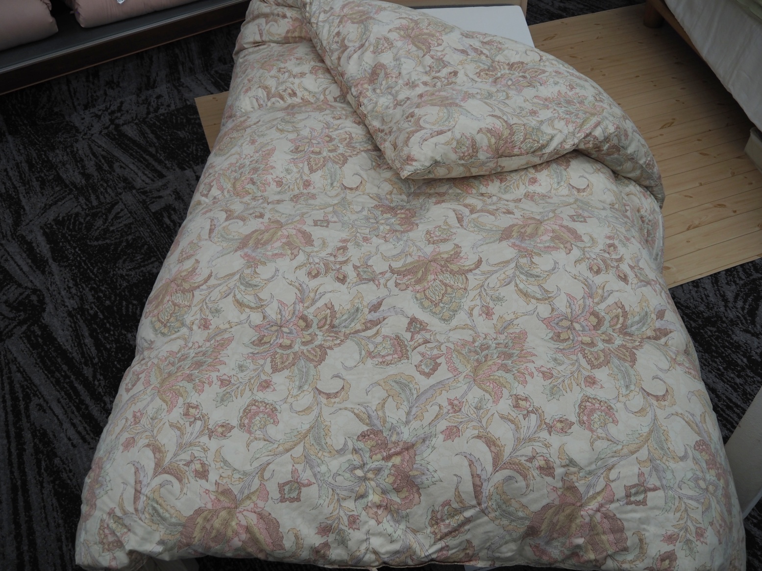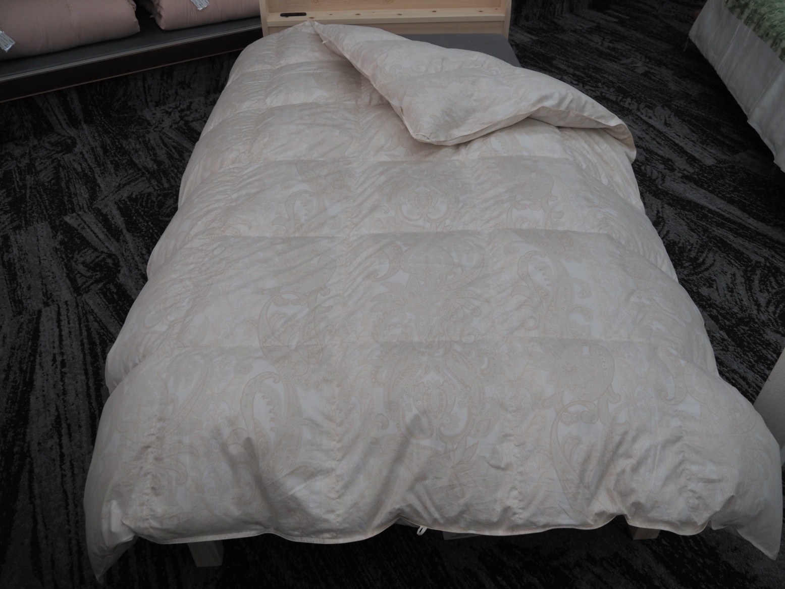 ダブルからシングルに作りかえしたいというのがご希望でしたが、お客様が気密性の良いマンションにお住まいということもあり、シングルの合掛をご提案させて頂きました。冬だけでなく長いシーズン使えて、嵩が低いため収納も少し楽に。