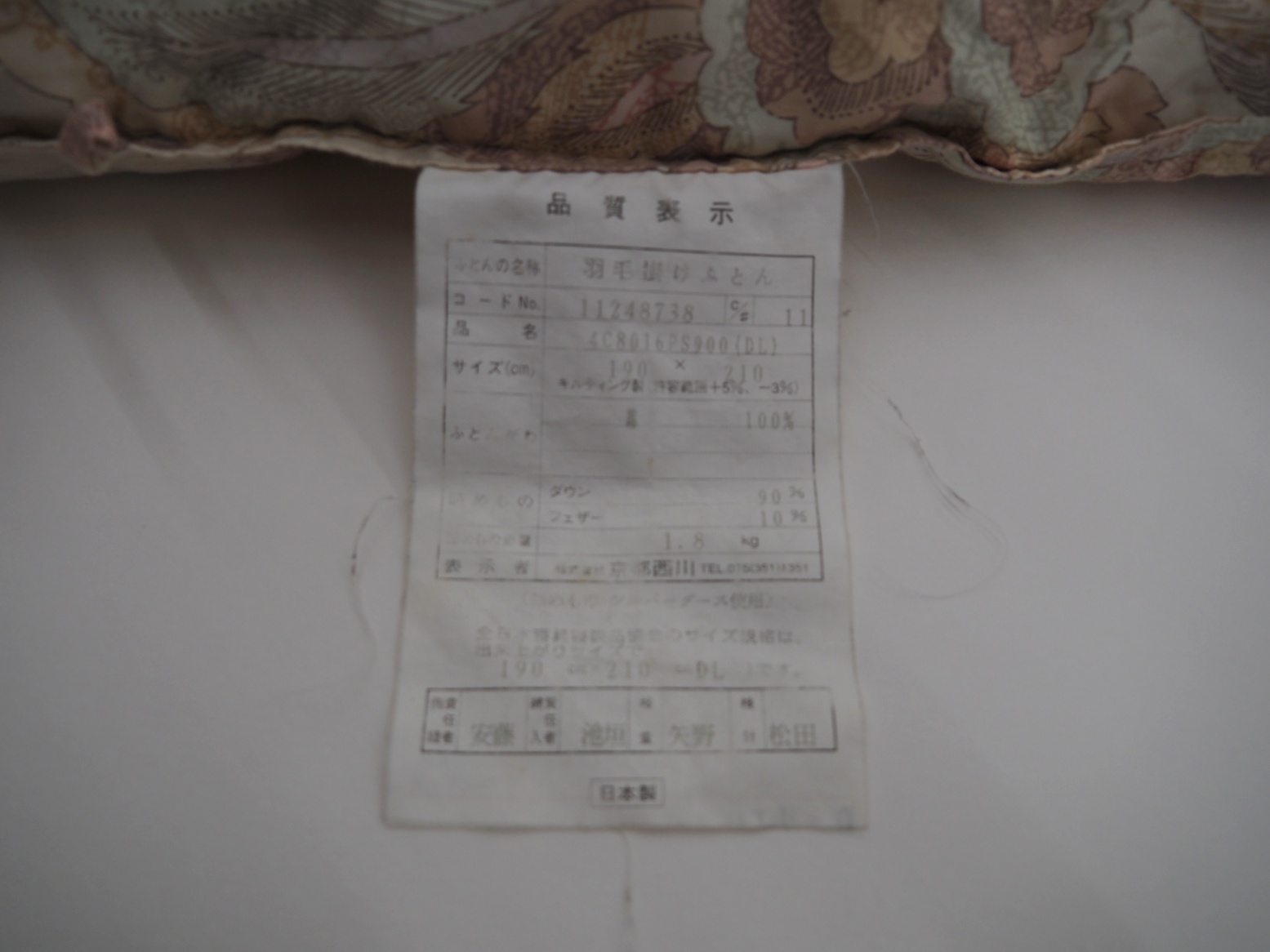 お預かりした羽毛布団は、西川の綿100% グース90%が1.8kg入った羽毛布団。
