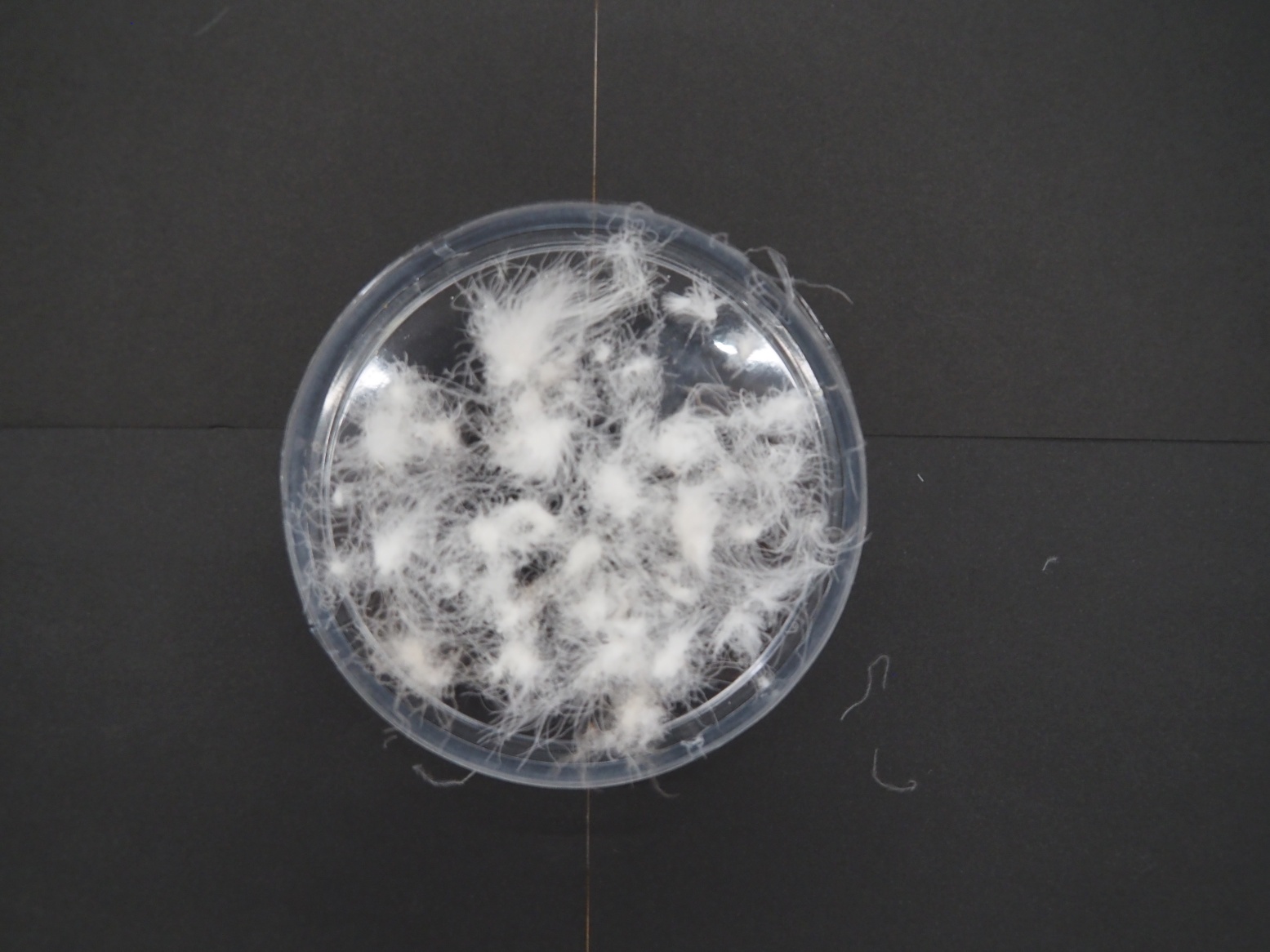 一つ一つの羽毛は大きくパワーもありますが、何個も絡まり合い団子状になっているのが見受けられます。