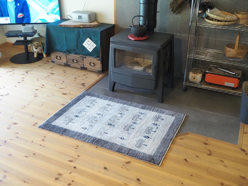 亀岡市に住むK様より、薪ストーブ前にギャッベ絨毯をお選び頂きお写真撮らせて頂きました。