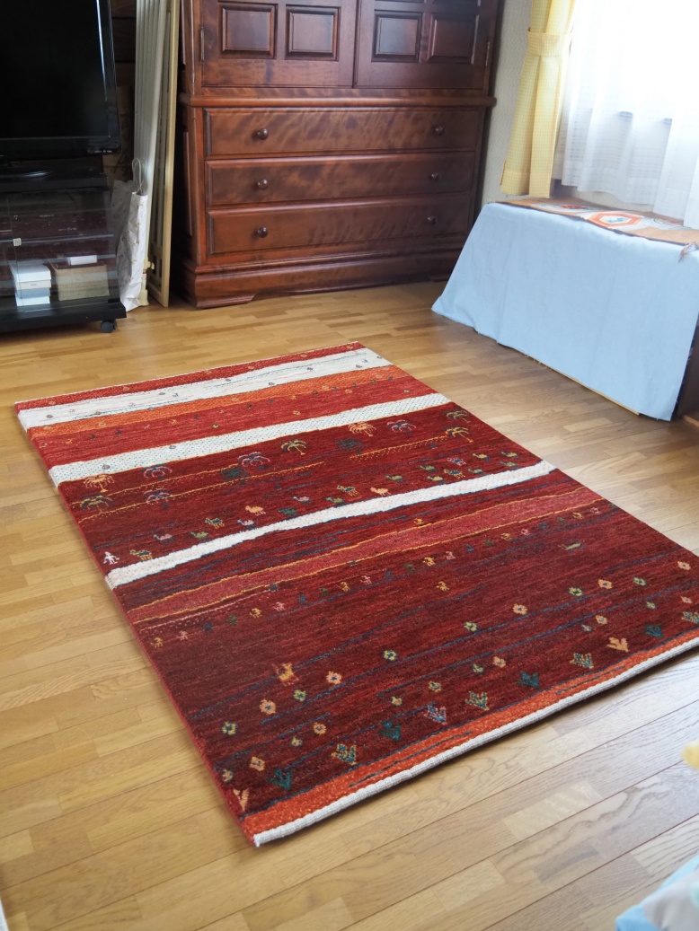 京都 亀岡に住むK様に、お店でお買い上げ頂いたギャッベ絨毯のお写真撮らせて頂きました。