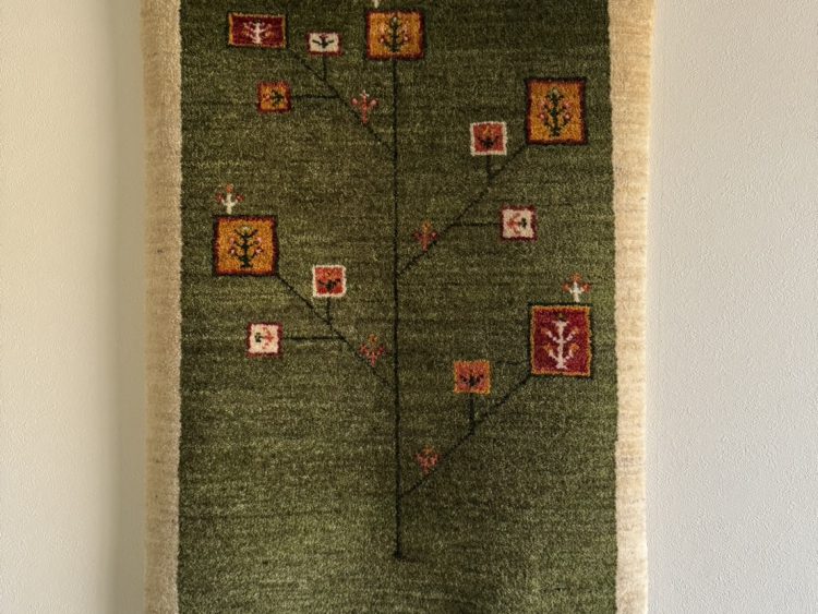 ギャベ ギャッベ 緑 タペストリー 洋風 生命の樹 絨毯 リビング インテリア 雑貨 ゾランバリ トライバル ラグ バルーチ トルクメン 遊牧民 北欧 洋風 草木染め インテリア 住宅リフォーム 京都 亀屋寝装センター
