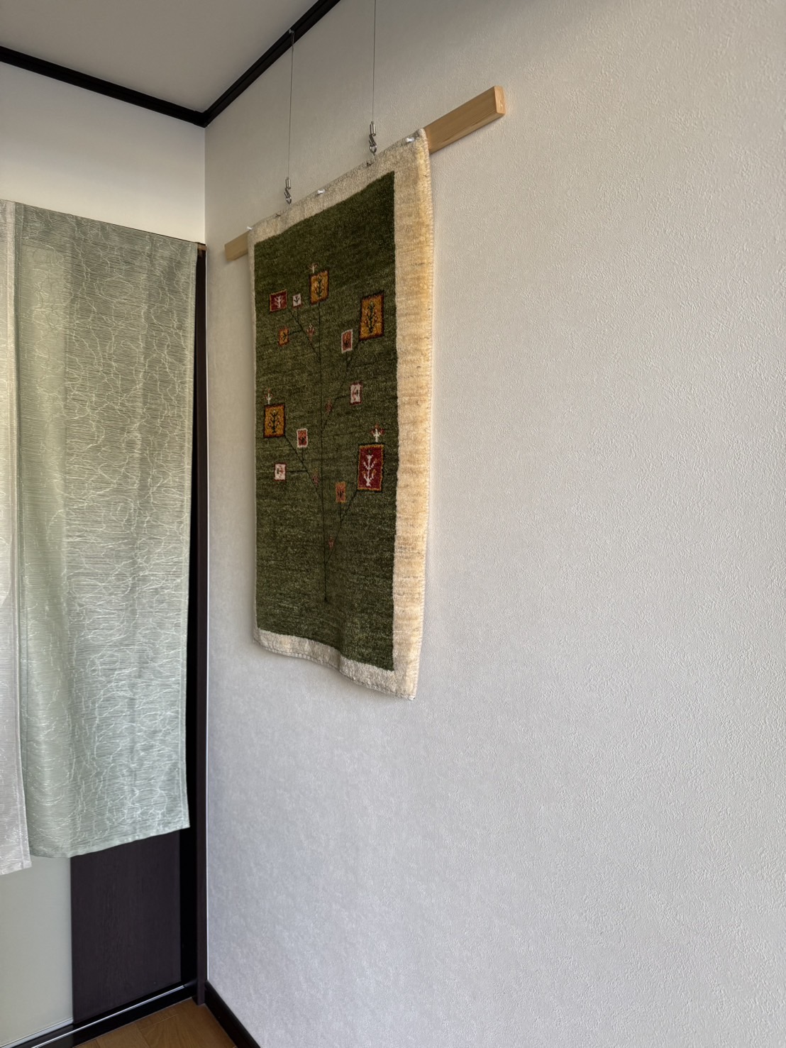 玄関にギャッベ絨毯をタペストリー # CASE1076 | 京都亀岡・匠がいる寝暮(しんぐ)店|亀屋寝装センター