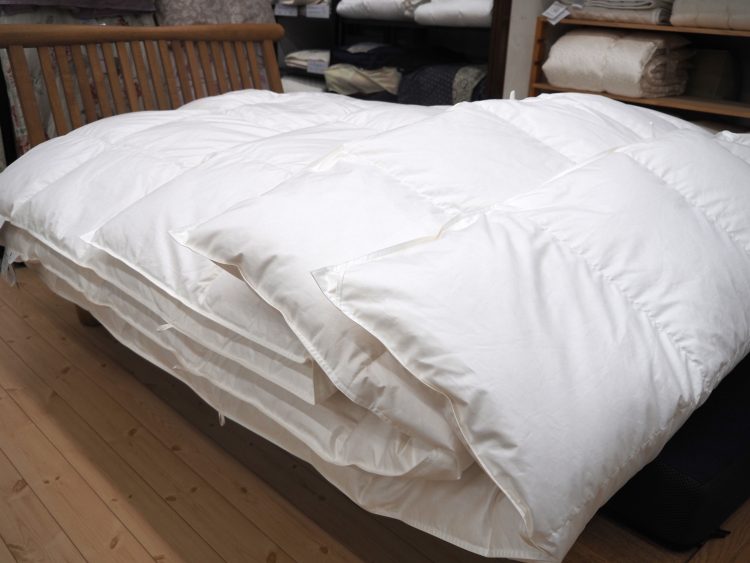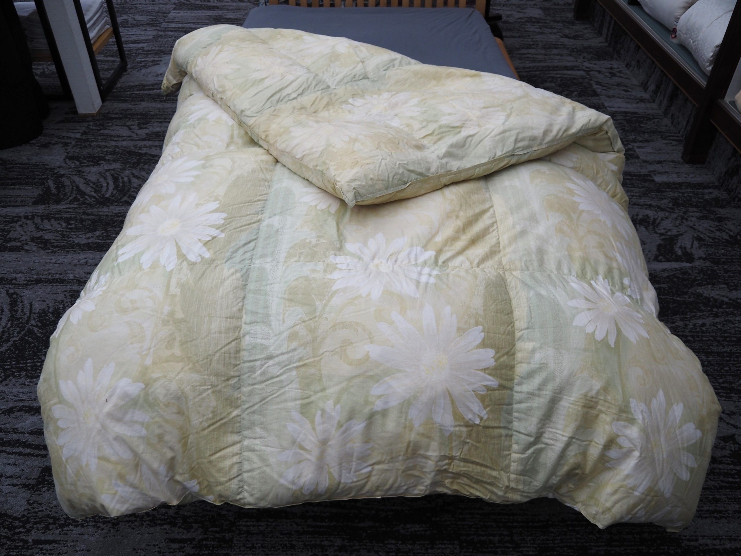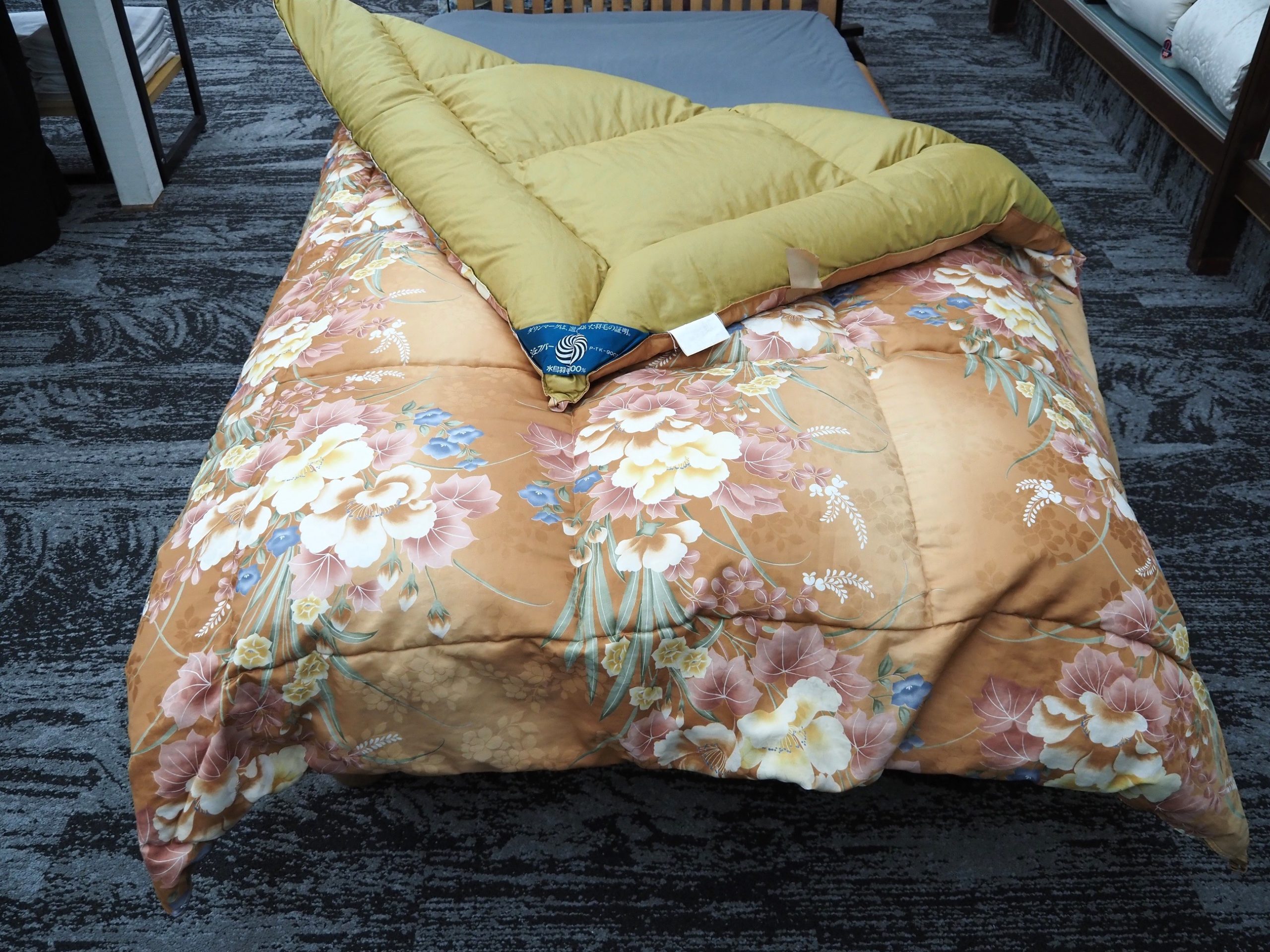 こちらは合掛け布団。季節の変わり目は気温が安定せず、朝晩冷え込んだりするので合掛け布団はかなり重宝します。冬になれば肌掛けと2枚重ねにして使うことで温度の調整がしやすいのでご提案させて頂きました。