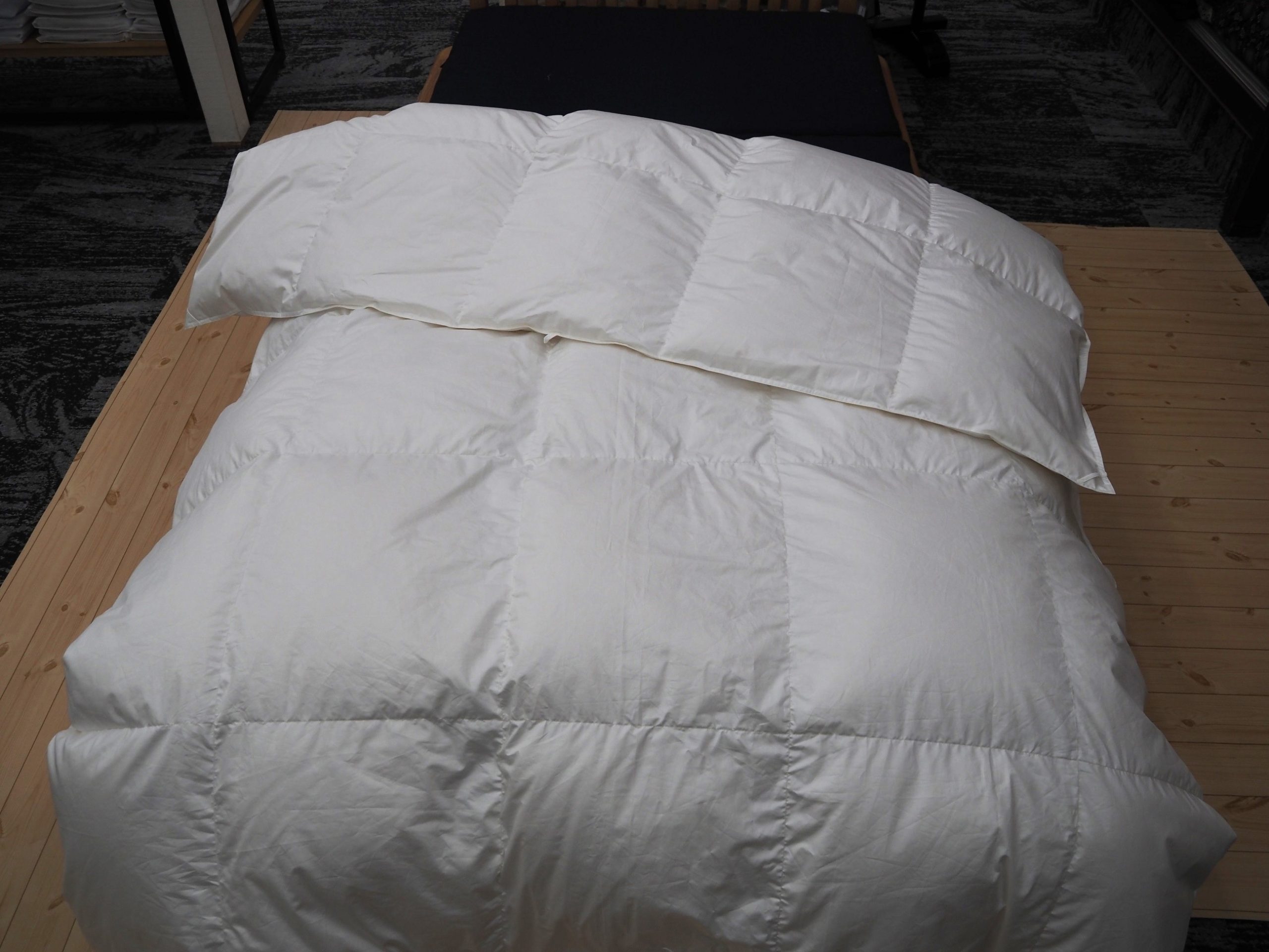 肌掛けが欲しいと仰られていましたが、家族分作ってもかなり羽毛が余ります。家をリフォームしたばかりで気密性も良いので冬用の羽毛布団は暑い。とのことだったので合掛け布団とダウンパッドをご提案させて頂きました。