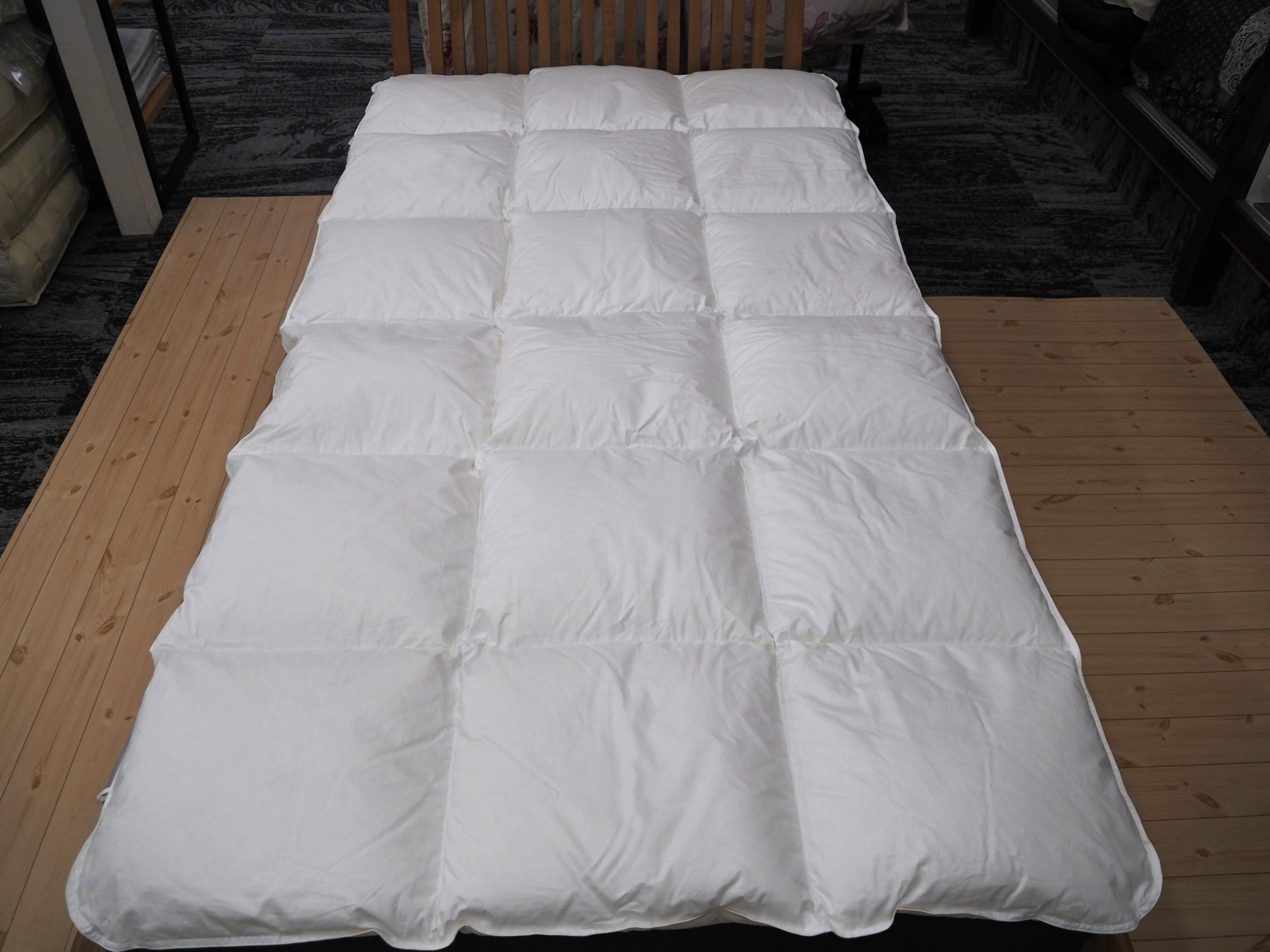 グース95%と記載されているこちらの羽毛は3枚ありましたが、どれも嵩がしっかりしており30年前とは思えない綺麗さ。もちろん羽毛も大きな羽毛で恐らくマザーグースでした。
