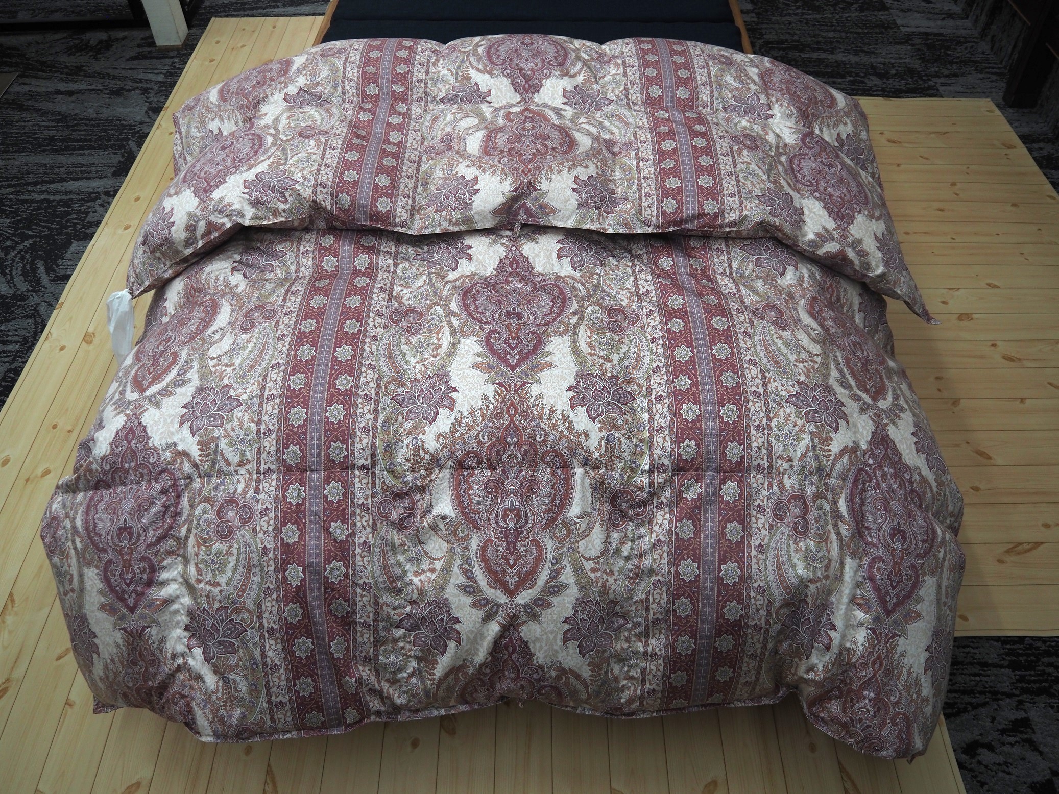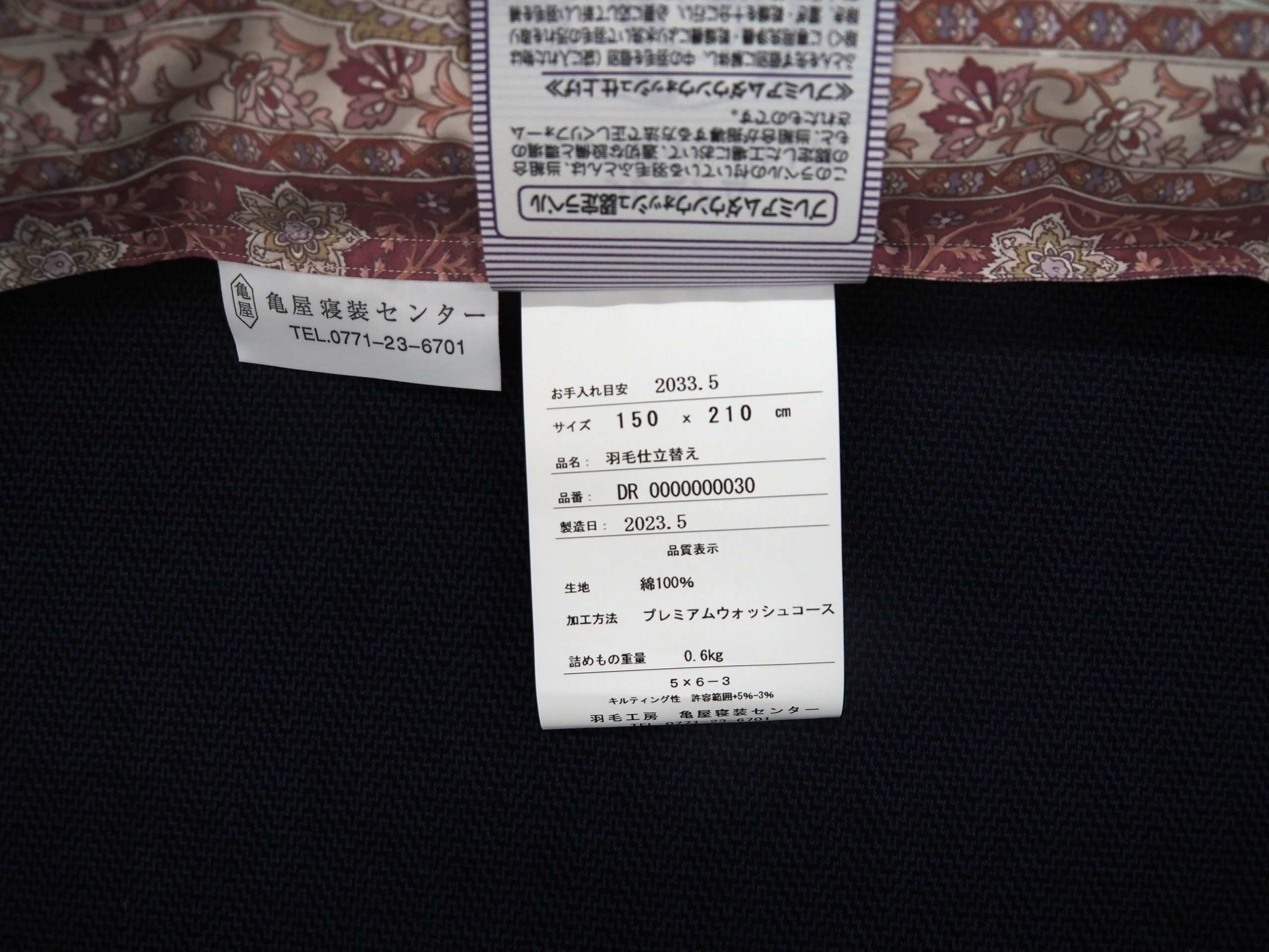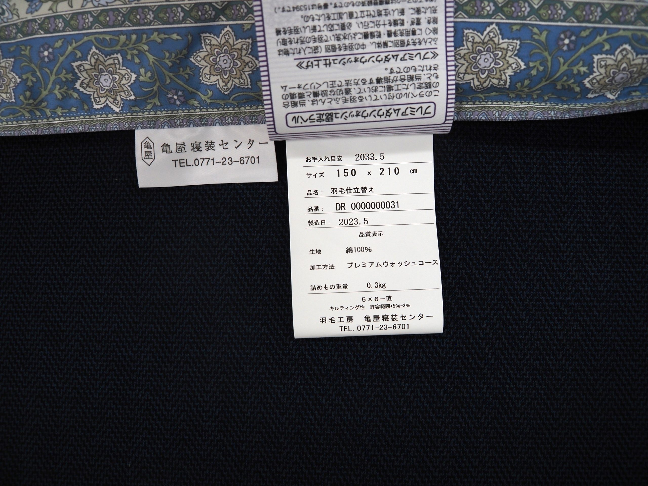亀岡市の一軒家に住むN様より、最近暑くなってきたので羽毛布団を片付けようと思って、カバーを外そうとしたらカバーの中が羽毛だらけで、もし羽毛が使えるなら、これから使える合掛け布団や肌掛け布団に作りかえたい。とご相談頂きました。