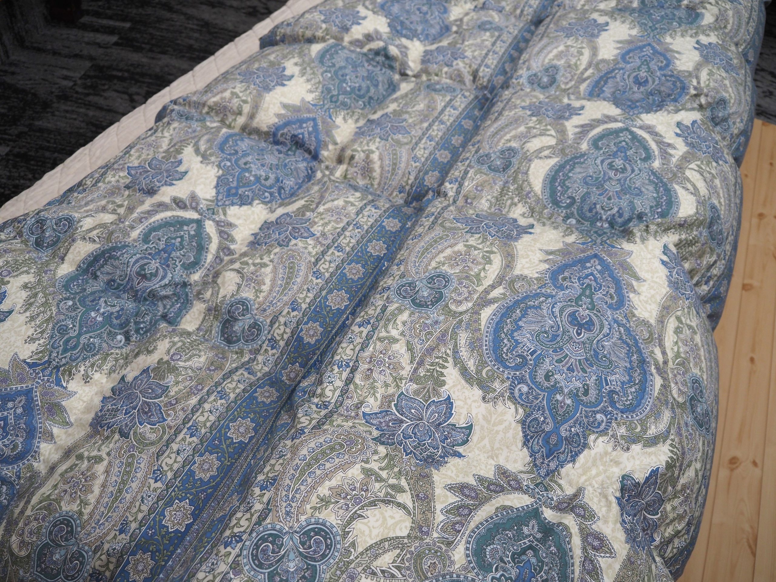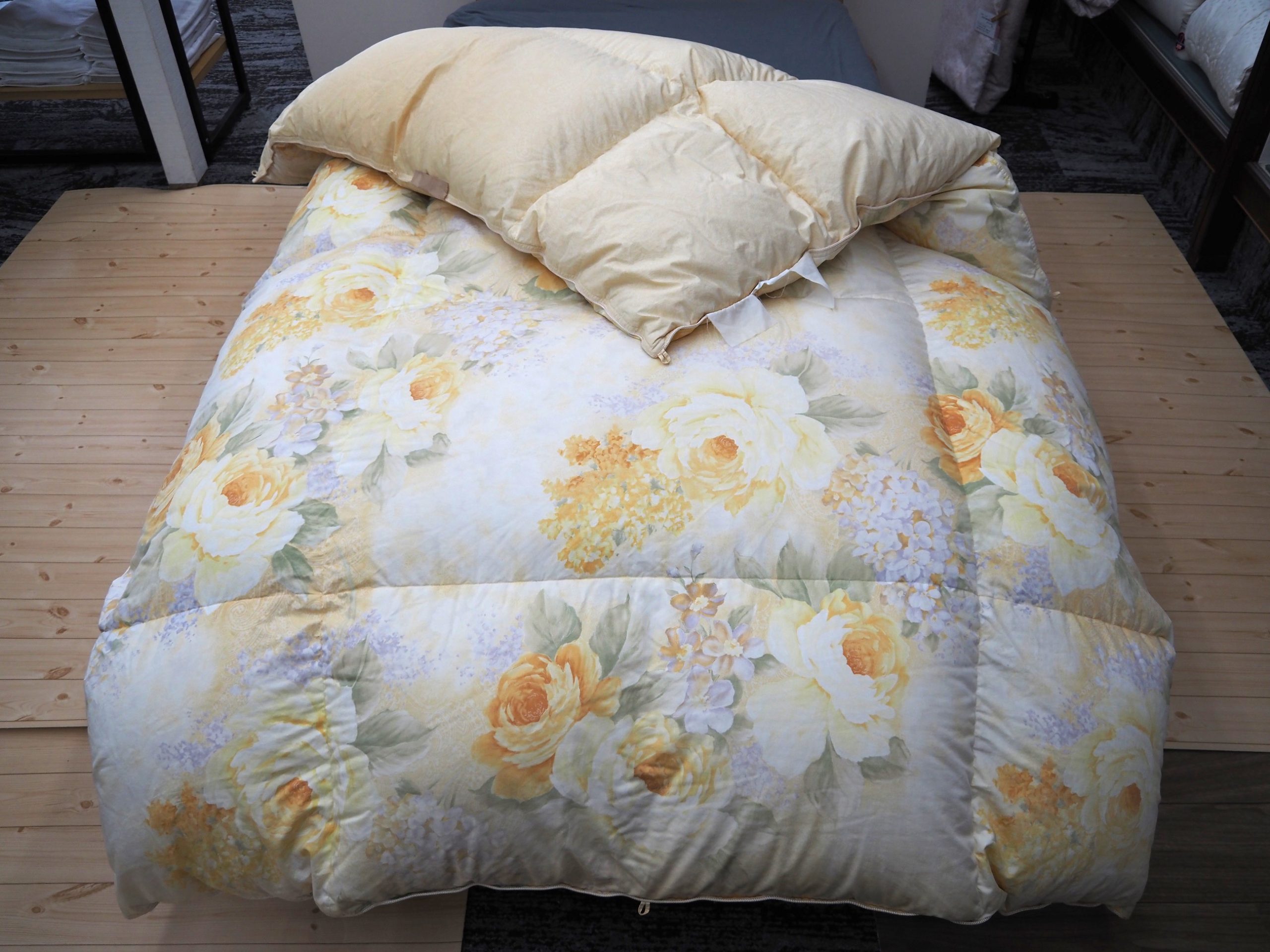 長年使っていてラベルはもう見えなくなりメーカーや羽毛の質は把握できませんでしたが、ボリュームから推測するとかなり良い羽毛が入っていたんだろうなと感じます。