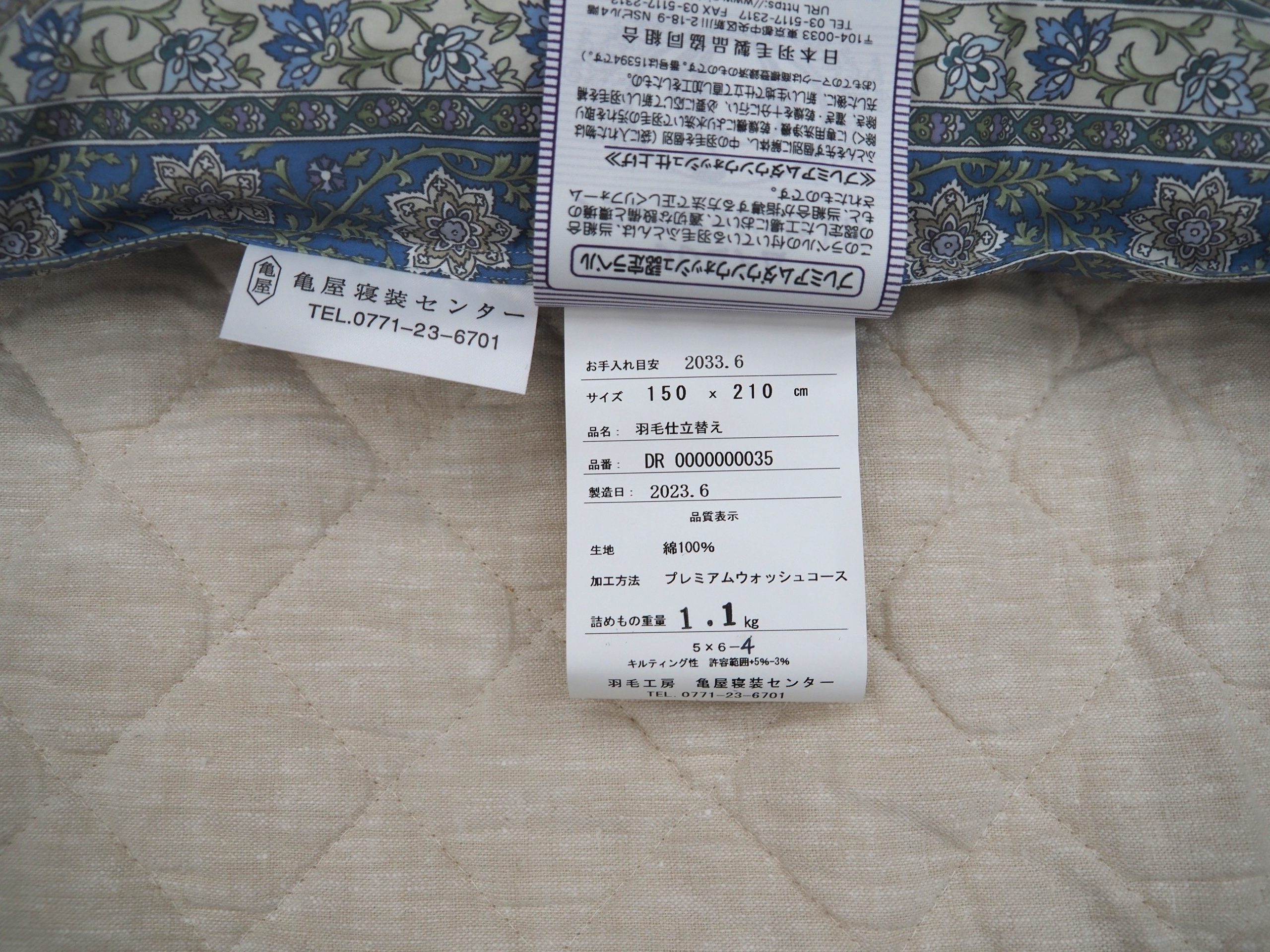 亀岡市 M様 羽毛布団リフォーム