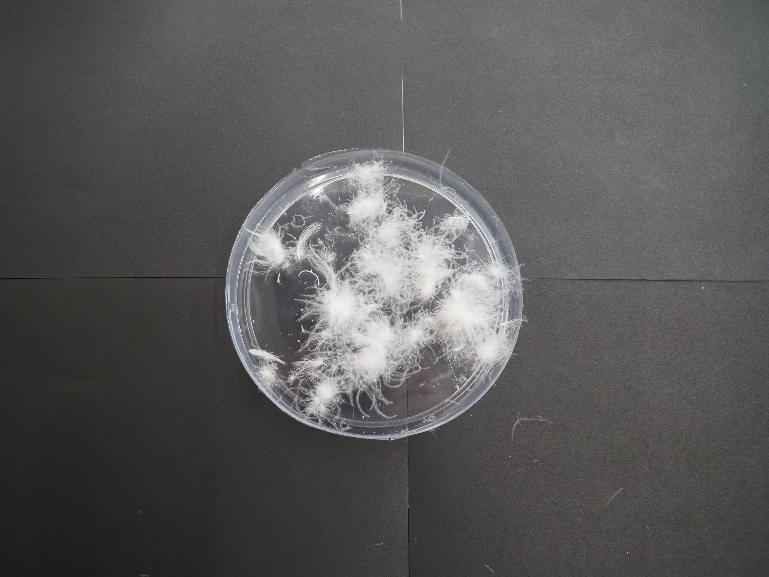 羽毛を取り出すと、グースの羽毛でもかなり大きい親鳥であるマザーグースぐらい大きくてしっかりしている羽毛。