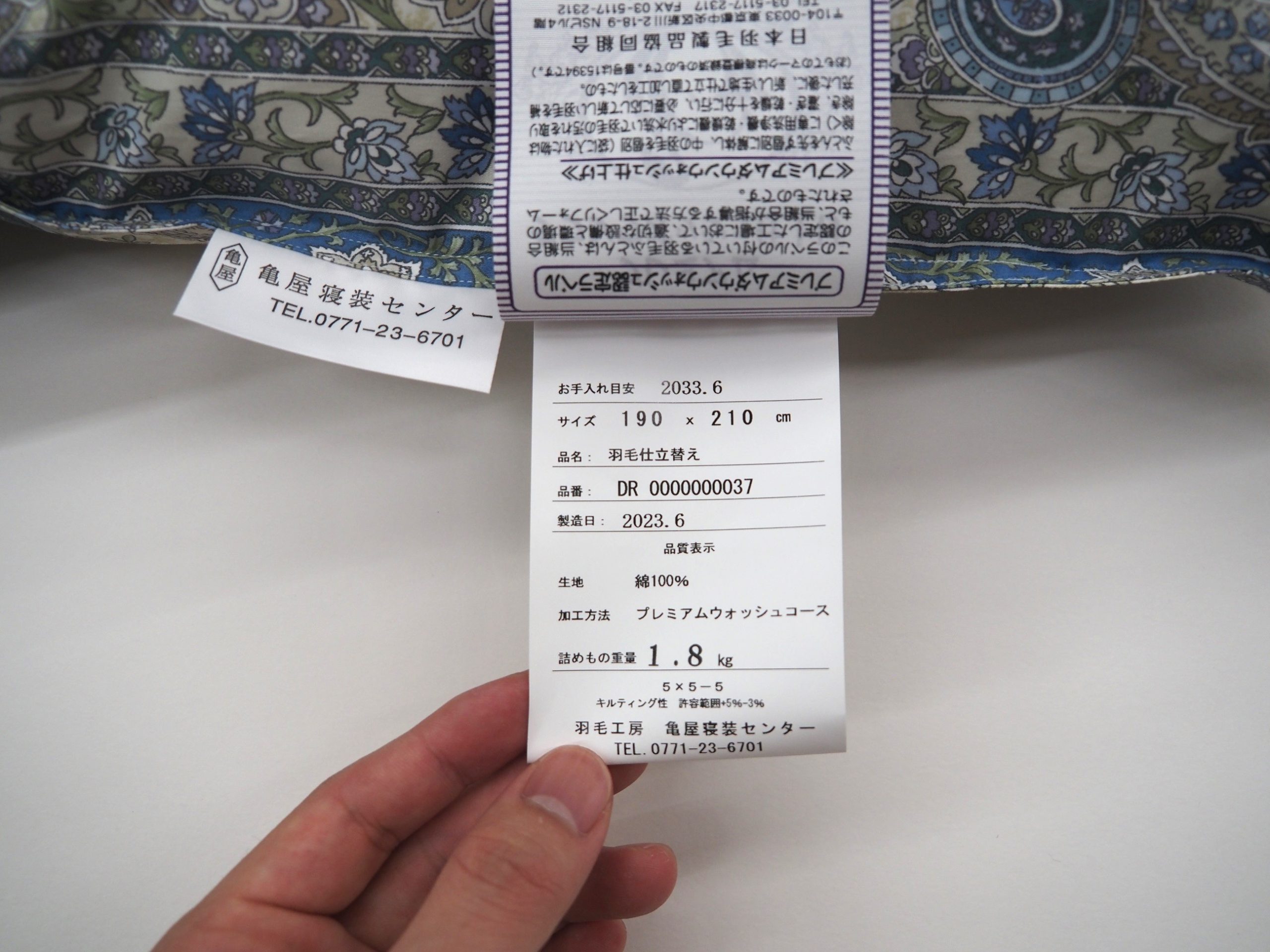 かなり悩まれましたが、新しい羽毛布団を買うのと価格を比べると、1/3ぐらいなのでリフォームされることに。