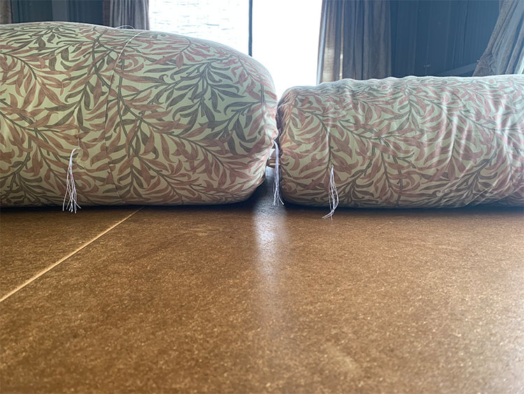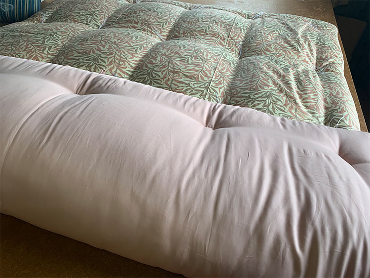 敷布団は5.5㎏入りにして、掛布団は3㎏入りと2㎏入りの2枚作らせていただきました。