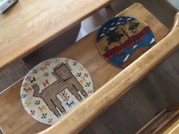 ダイニングチェアに円形と四角のミニギャッベ # CASE1084