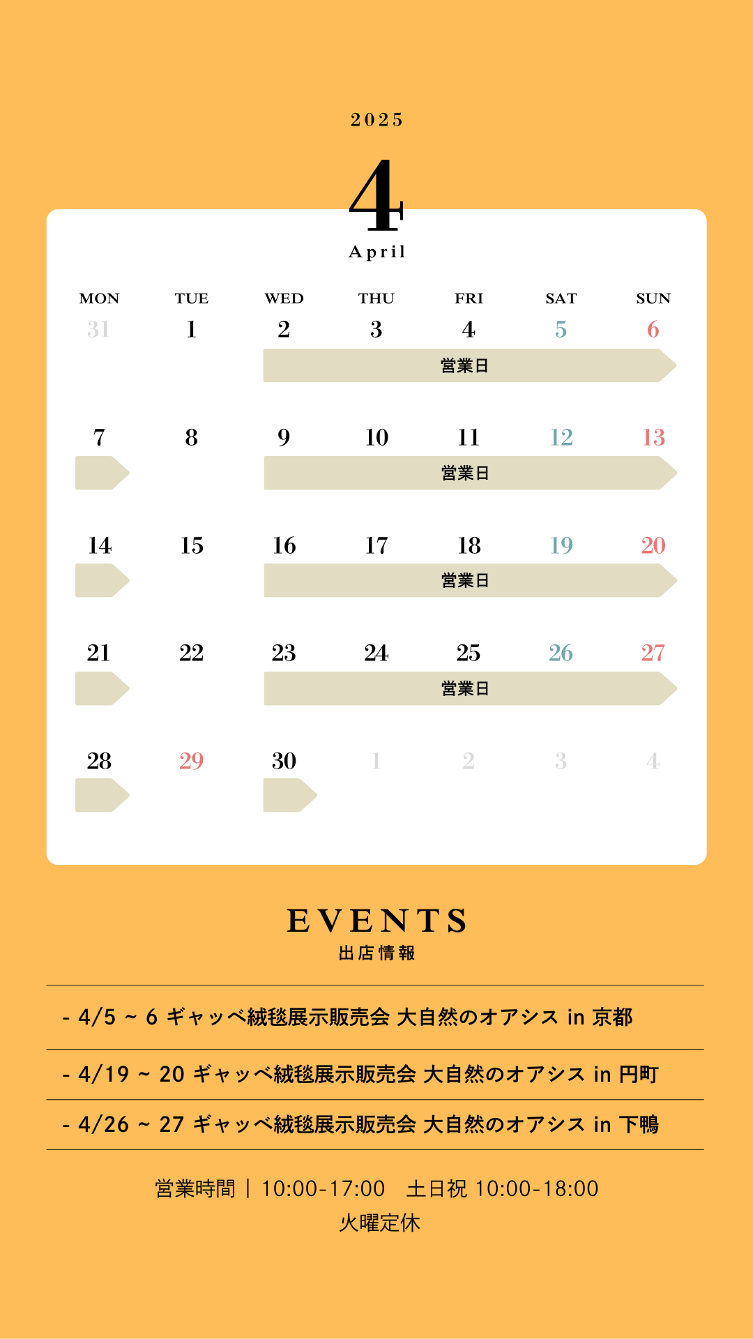 4月の営業時間とイベントです