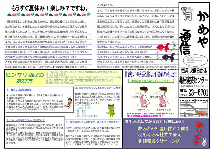 かめや通信 心地よい眠りのためのtips満載!かめや通信のバックナンバーをご覧いただけます。