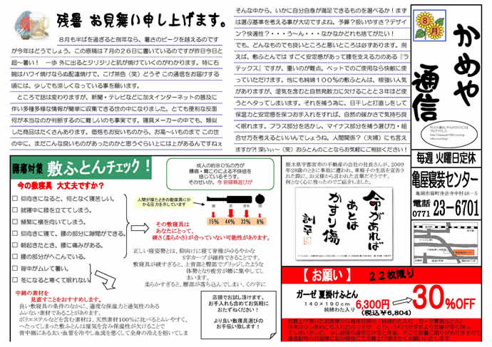 かめや通信 心地よい眠りのためのtips満載!かめや通信のバックナンバーをご覧いただけます。