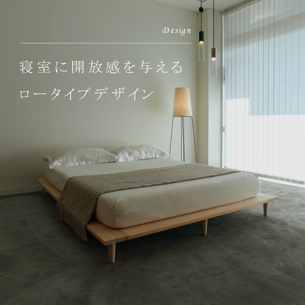 インテリアに開放感を与えるロータイプデザインを採用。フレーム高さを低くすることで空間にゆとりが生まれます。ディテールにこだわりシンプルでありながら、凛とした存在感がインテリアを包み込みます。