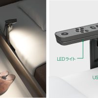 手元のスイッチは、持ちやすさに配慮してコンパクトに。裏側にLEDライトもあり、用途に合わせて角度を変えられるので、間接照明や補助照明として使うことが出来ます。