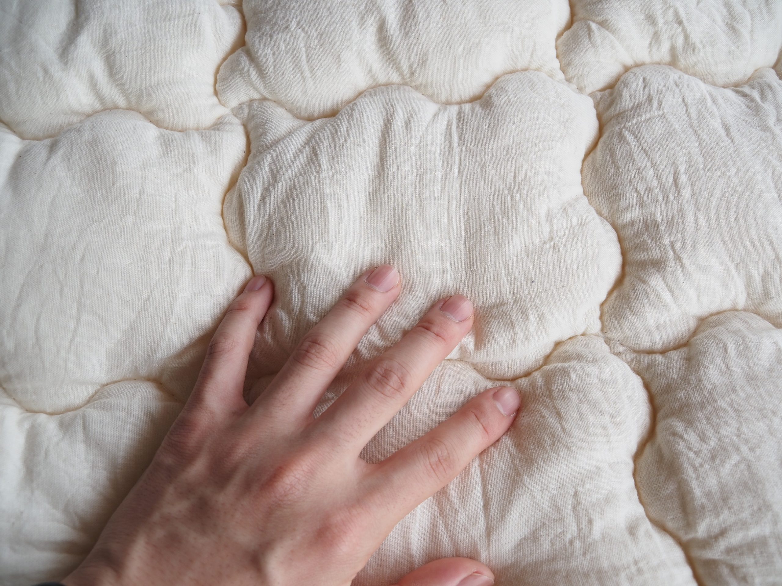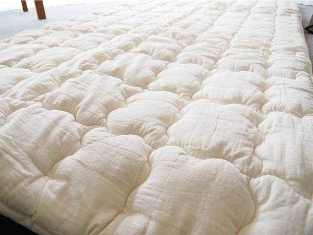 | 素材 | 側生地:綿100% (二重ガーゼ) 中わた:毛100% (英国ウール) |