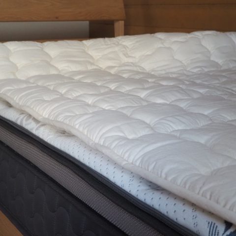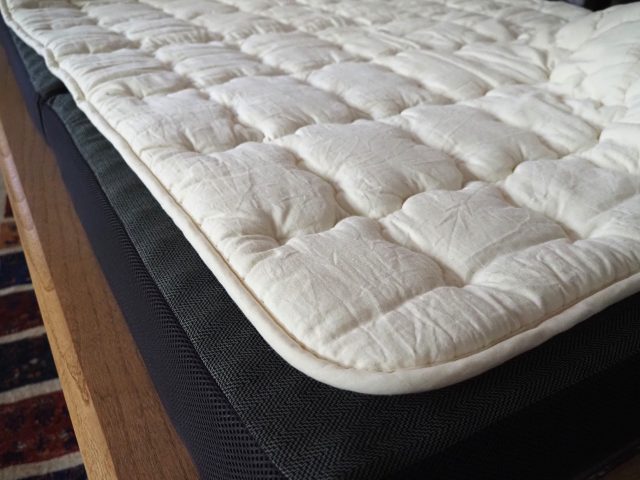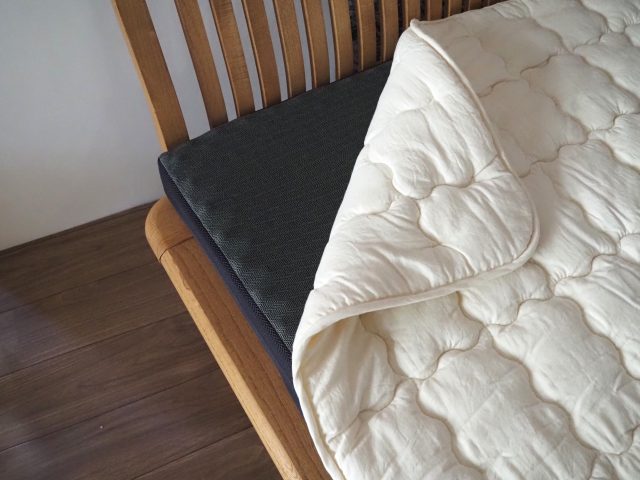 見た目ははごく普通。約3~4cm程の厚みでも弾力がしっかりあり、マットレスや敷布団の上に重ねるだけで、人間の背面の凹凸を吸収し寝心地が格段に上がります。