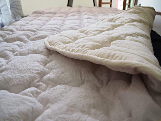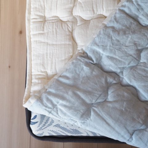 | 素材 | 側生地:麻100% (リネン),綿100% (国産ガーゼ) 中わた:毛100% (英国ウール),麻シート入 |