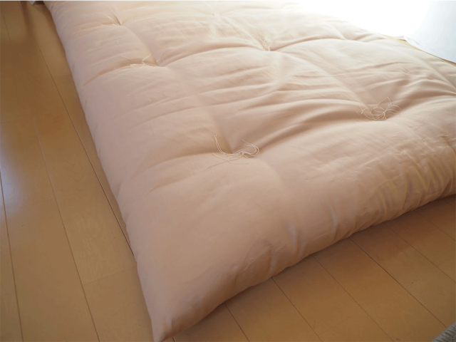 ※ご家庭やコインランドリーでは洗えません。乾燥が十分に出来ない上に、中わたが片寄り「敷きふとん」として機能しなくなります