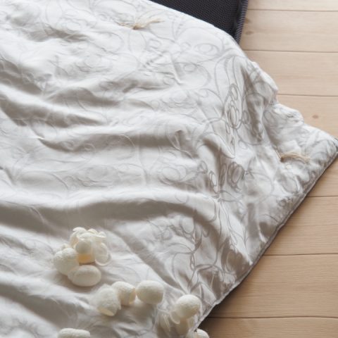| 素材 | 側生地:絹100%(甲州織ジャガード 山梨県) 中わた:絹100% |