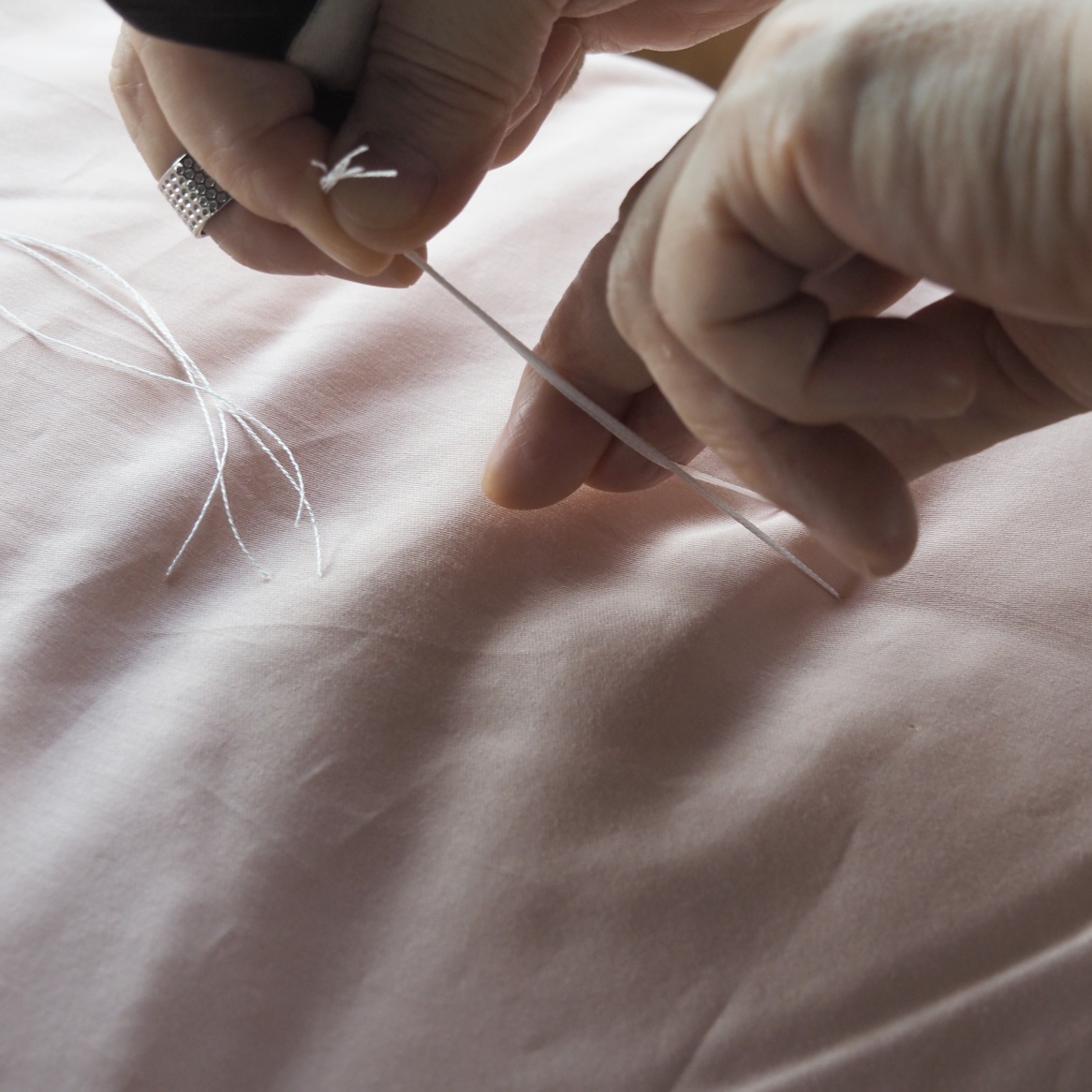 マザーコットンケットは、生地の裁断から仕上げ、検品まで全て手作業