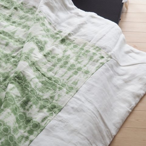 手描き染め麻100%肌掛け布団 「日の出絞り」
