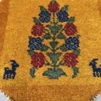 大地にテントを張り、地面に敷くための生活道具でありお布団にもなるため、毛足が長く丈夫でフカフカした感触があります。織り子さんの感性のみで描かれる個性的な文様が魅力的でお部屋に明るさとホッとする場所を与えてくれます。