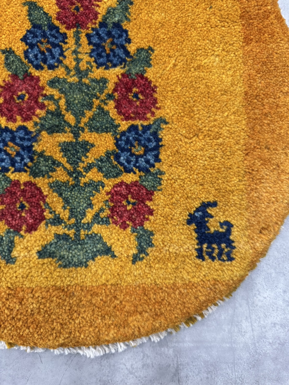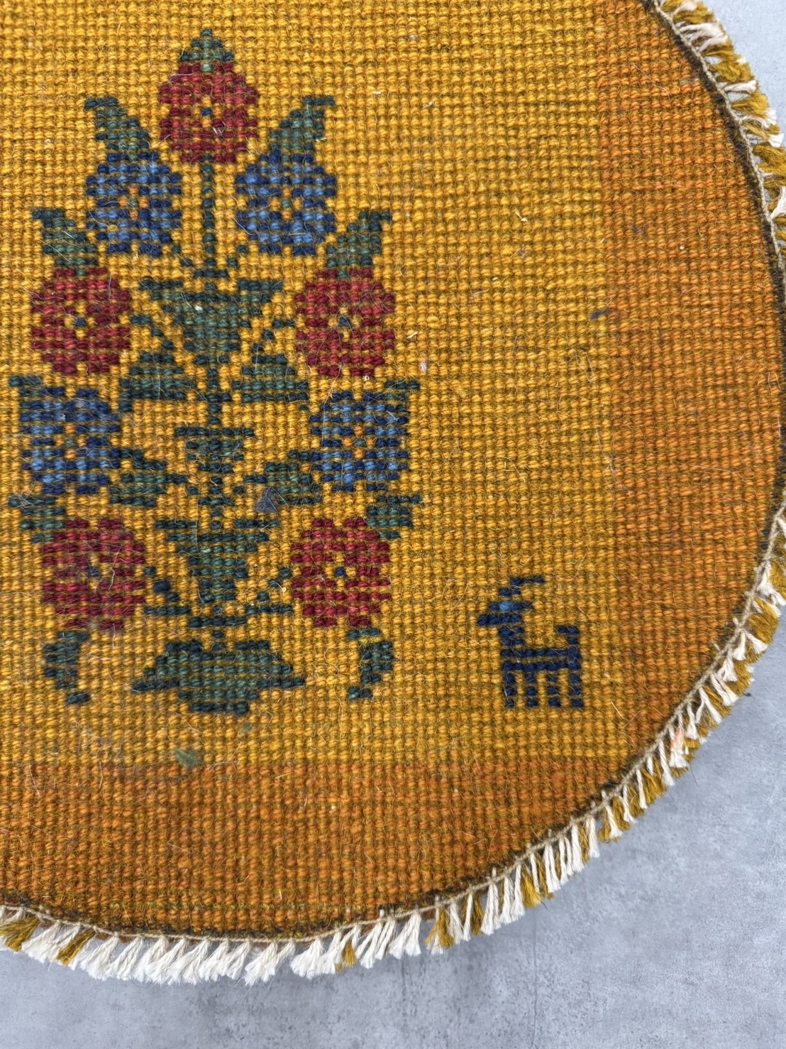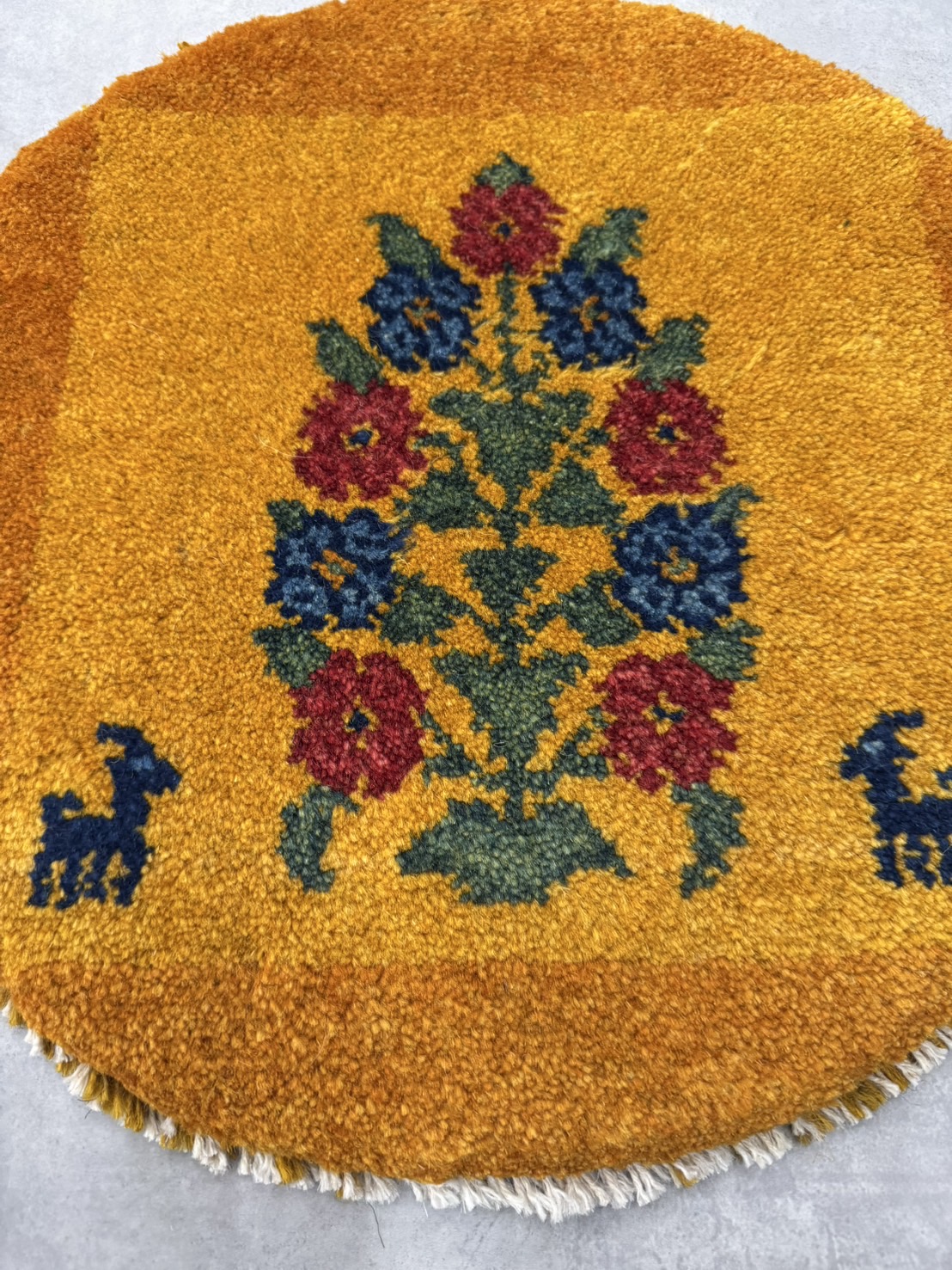 【SOLD OUT】ギャッベ | 座布団サイズ(円形) 37×38cm 生命の樹 鹿 イラン #CC-146