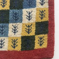 大地にテントを張り、地面に敷くための生活道具でありお布団にもなるため、毛足が長く丈夫でフカフカした感触があります。織り子さんの感性のみで描かれる個性的な文様が魅力的でお部屋に明るさとホッとする場所を与えてくれます。