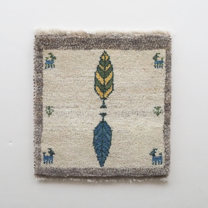 【SOLD OUT】 ギャッベ | 座布団サイズ 41×39cm 生命の樹 鹿 イラン #SC-078