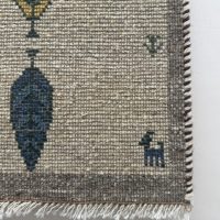 大地にテントを張り、地面に敷くための生活道具でありお布団にもなるため、毛足が長く丈夫でフカフカした感触があります。織り子さんの感性のみで描かれる個性的な文様が魅力的でお部屋に明るさとホッとする場所を与えてくれます。