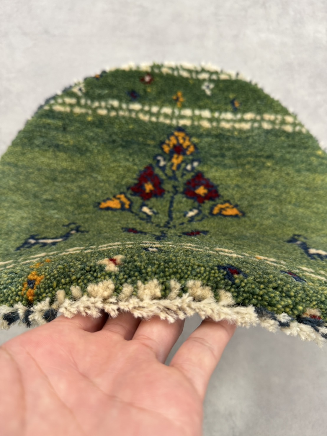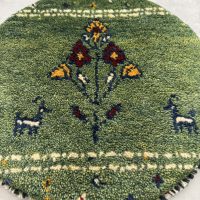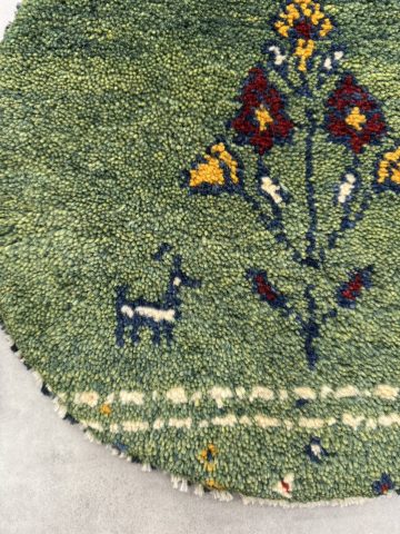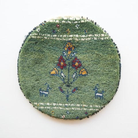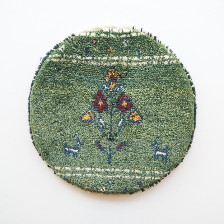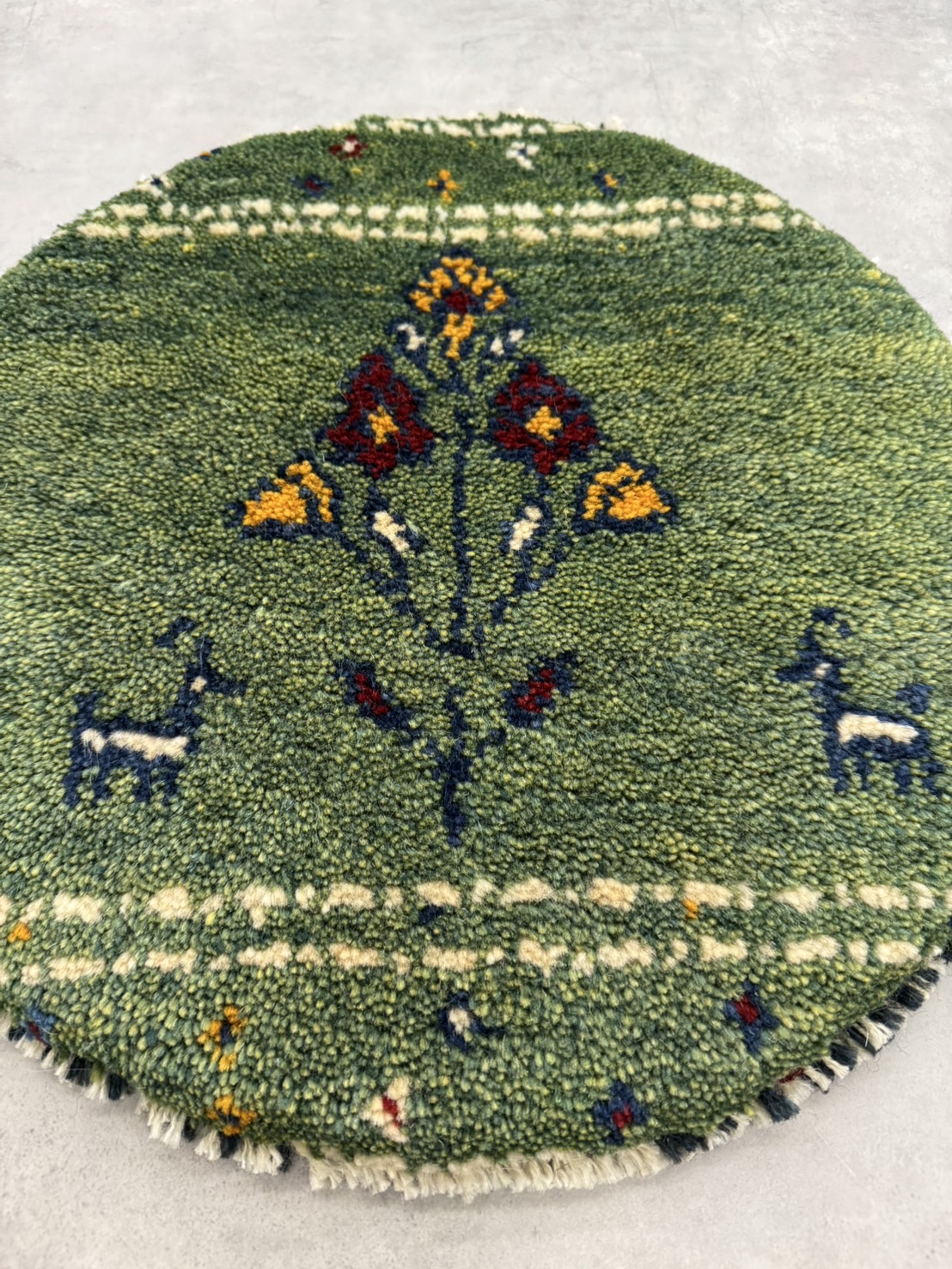 【SOLD OUT】 ギャッベ | 座布団サイズ(円形) 38×38cm 生命の樹 鹿 イラン #CC-079