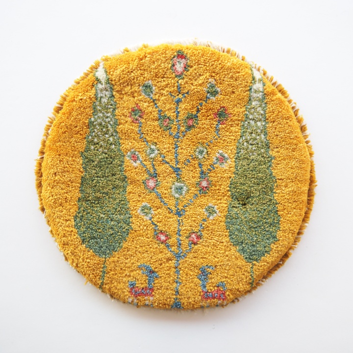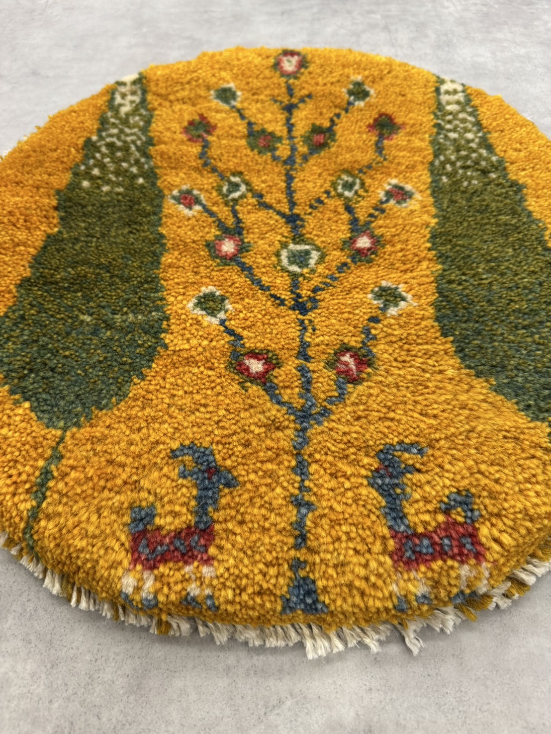 【SOLD OUT】ギャッベ | 座布団サイズ(円形) 38×38cm 生命の樹 鹿 イラン #CC-111