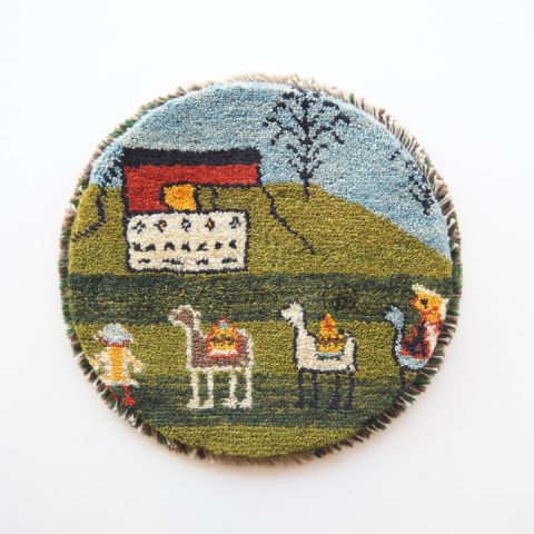 【SOLD OUT】 ギャッベ | 座布団サイズ(円形) 38×38cm 風景画 イラン #CC-141