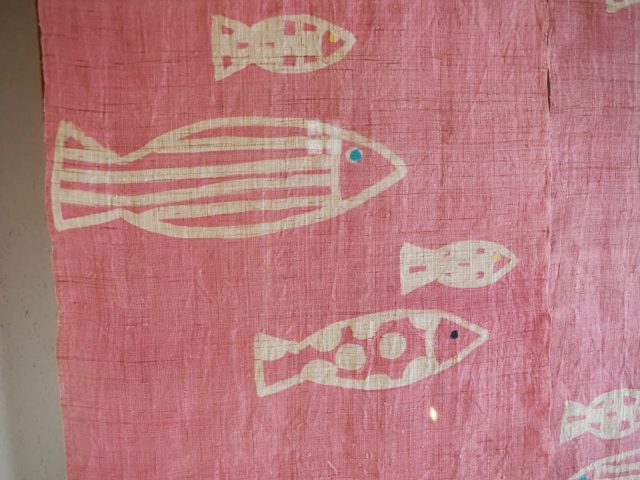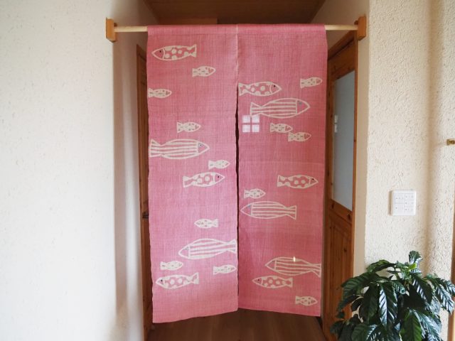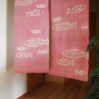 【SOLD OUT】 麻100%手描き暖簾 〈水のなか〉 ピンク